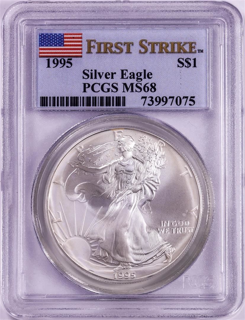 One 1995 $1 American Silver Eagle Coin PCGS MS68 First Strike. PCGS Graded.