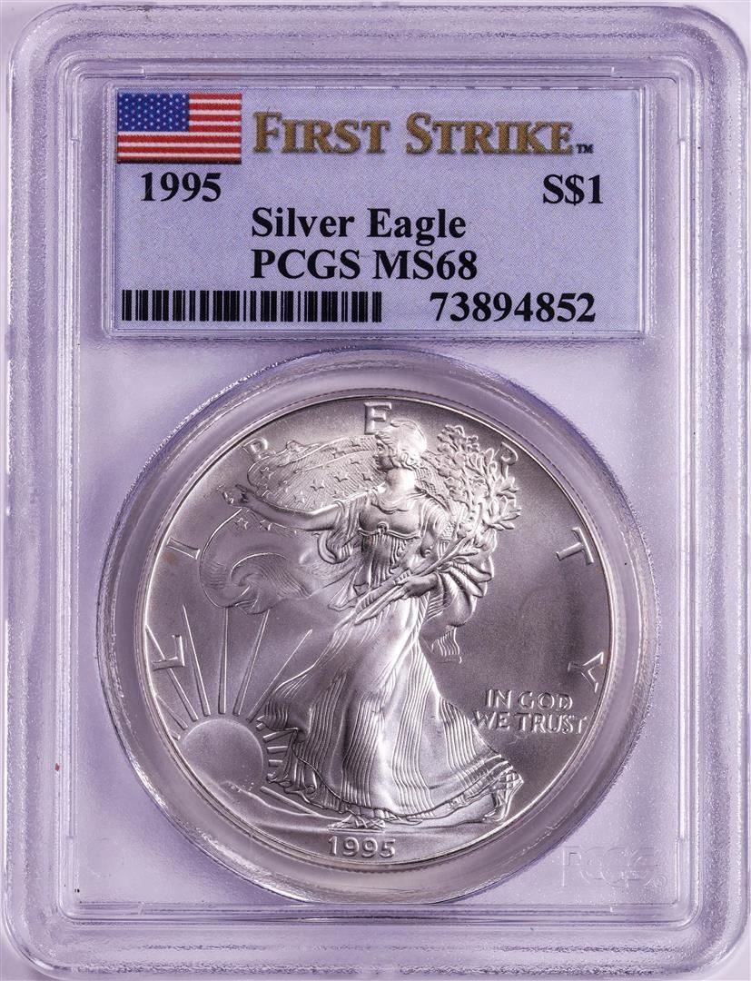 One 1995 $1 American Silver Eagle Coin PCGS MS68 First Strike. PCGS Graded.