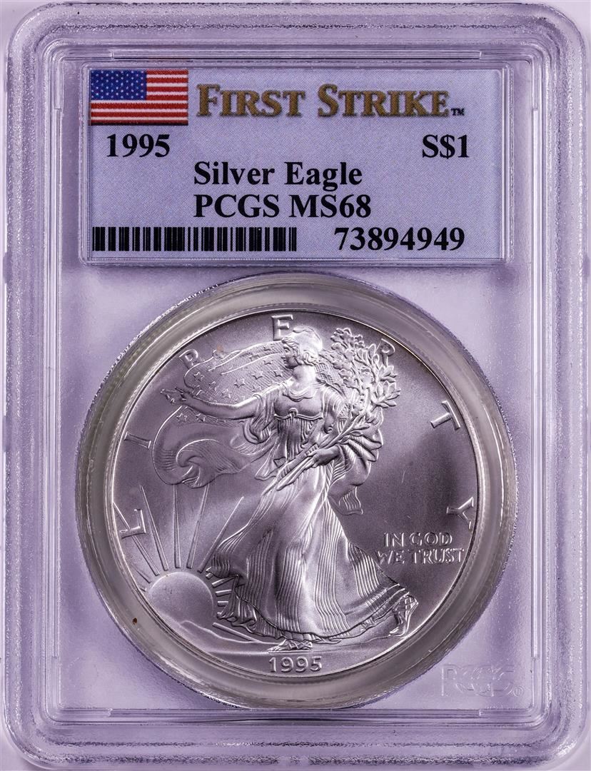 One 1995 $1 American Silver Eagle Coin PCGS MS68 First Strike. PCGS Graded.
