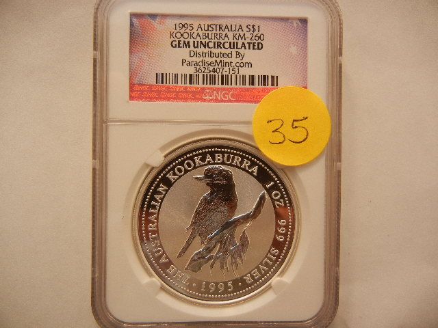 1995 $1 Australian Kookaburra, KM-260, GEM UNC, .999 Fine Silver, 1 Troy Oz., Graded by NGC