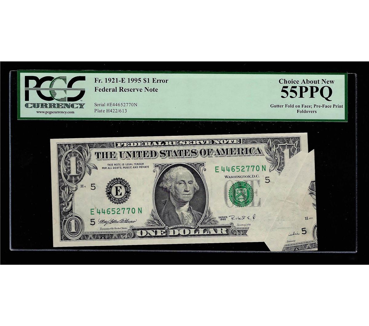 1995 $1 Federal Reserve Note ERROR Gutterfold on face PCGS 55PPQ