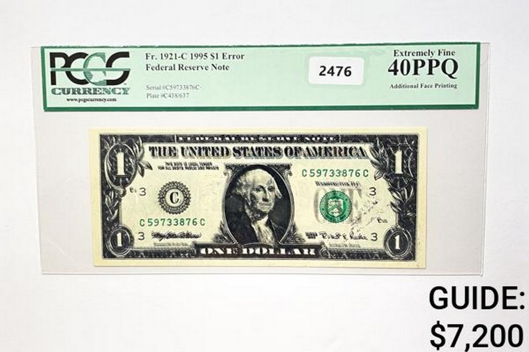 1995 $1 Federal Reserve Note-Error PCGS 40PPQ