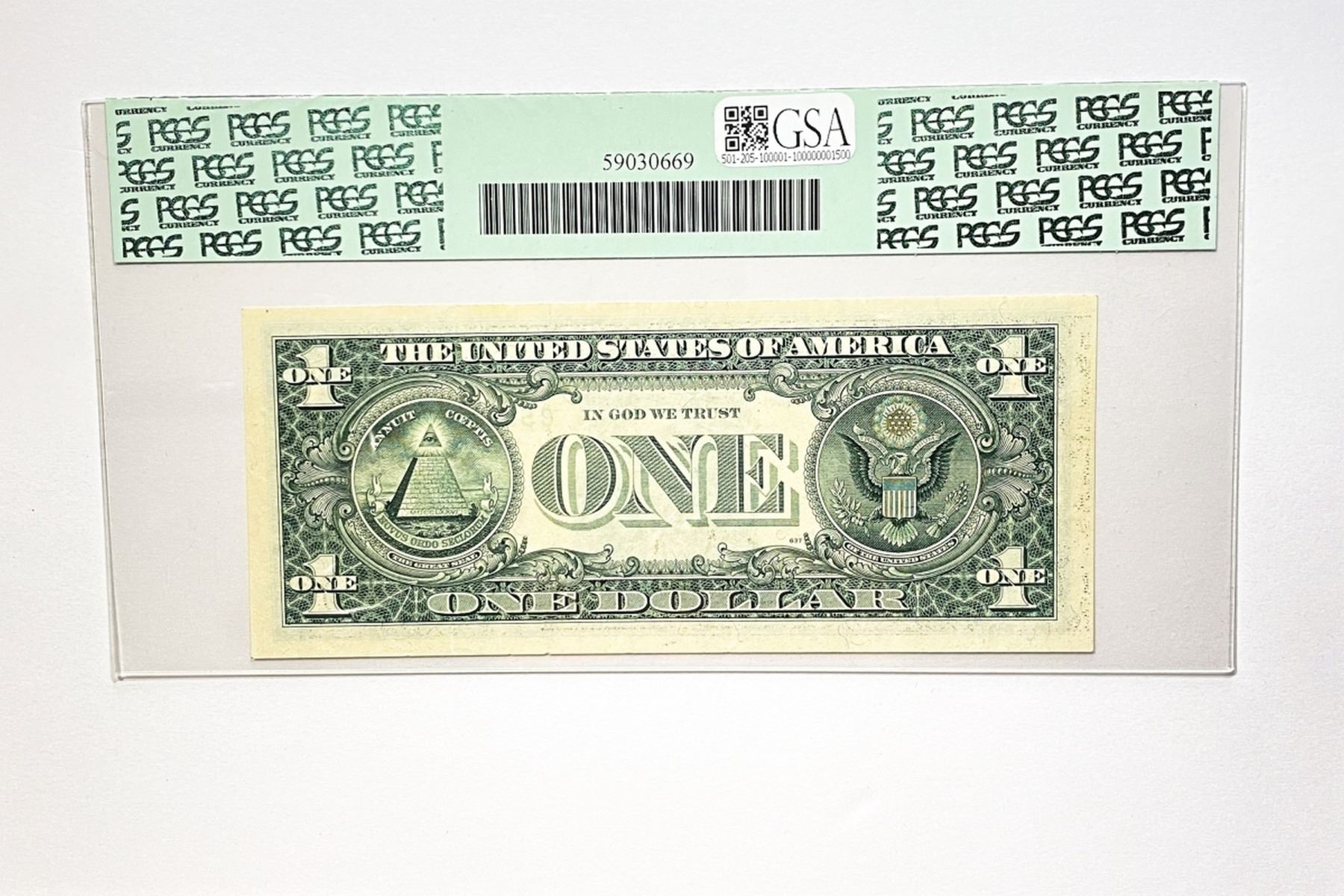 f. Notes sold referencing a third-party grading service are sold “AS IS” without any express or implied warranty, except for guarantee by GSA that they are genuine. Grading, condition or other attributes of any Product may have a material effect on its value and the opinion of others, including third-party grading services such as PCGS Currency and PMG may differ with that of GSA. GSA shall not be bound by any prior or subsequent opinion, determination, or certification by any grading service. Bidders specifically waive any claim to right of return of any Product because of the opinion, determination, or certification, or lack thereof, by any grading service. Certain warranties may be available from the grading services and Bidders are referred to them for further details: Paper Money Guaranty (PMG), PO Box 4711, Sarasota, FL 34230; PCGS Currency, PO Box 10470, Peoria, IL 61612-0470; PCGS Gold Shield, PO Box 9458, Newport Beach, CA 92658. Third-party graded notes are not returnable for any reason whatsoever.