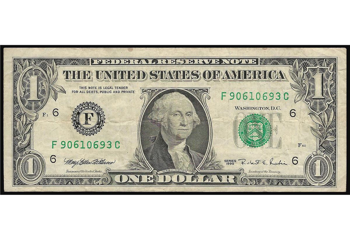 One 1995 $1 Federal Reserve Note Ink Smear ERROR.