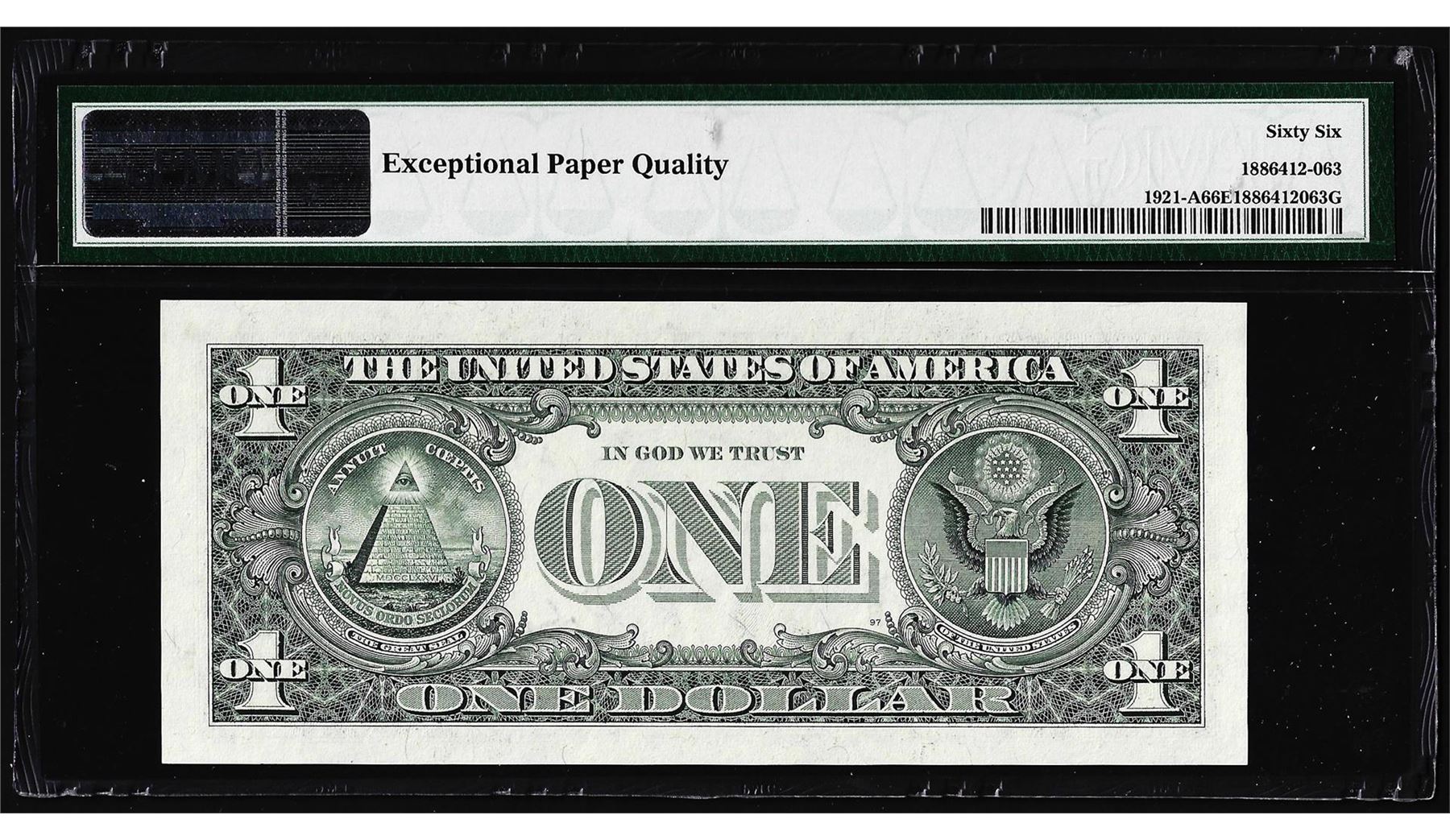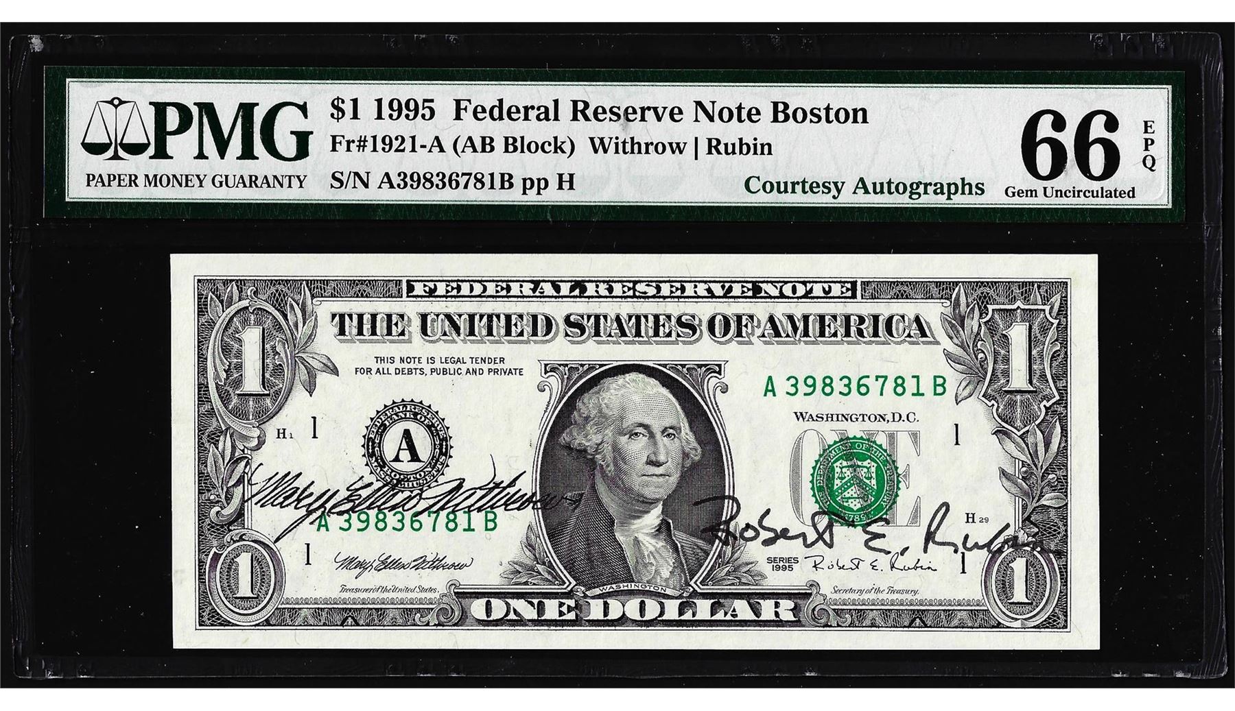 1995 $1 Federal Reserve Note PMG Gem Uncirculated 66EPQ Dual Courtesy Autographs
