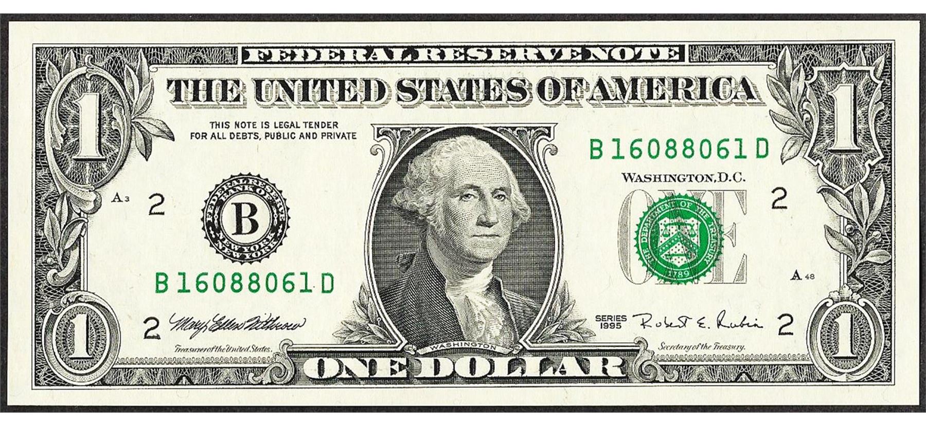 One 1995 $1 Federal Reserve Note Radar Serial Number.