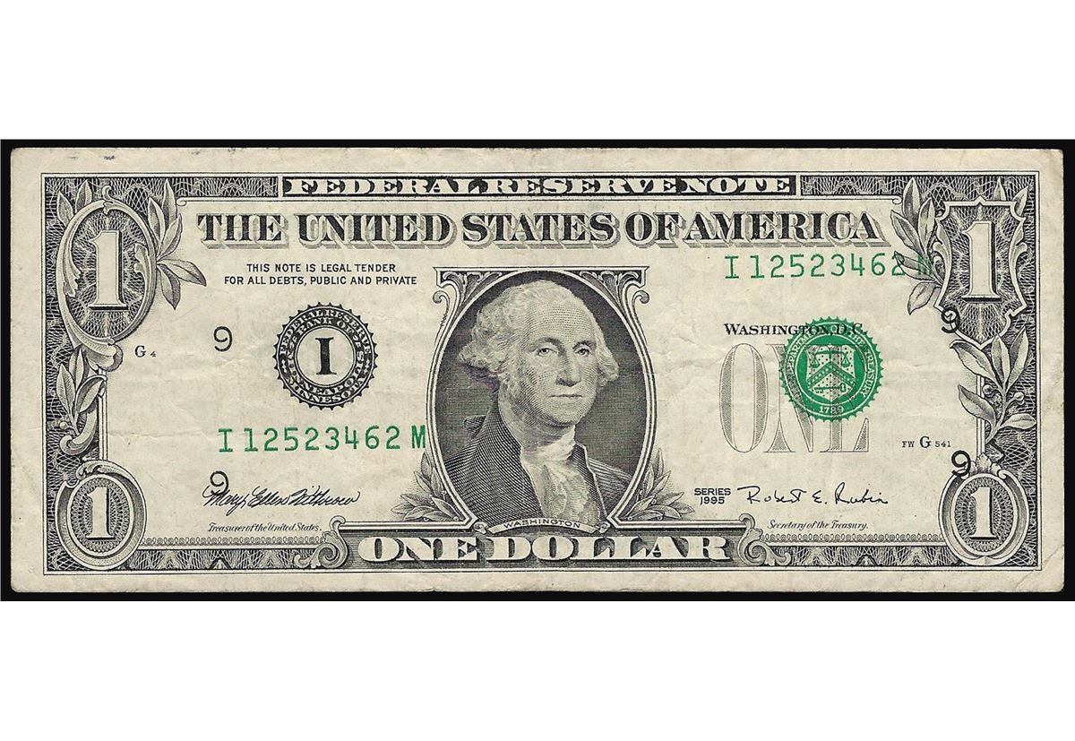 One 1995 $1 Federal Reserve Note Shift ERROR.