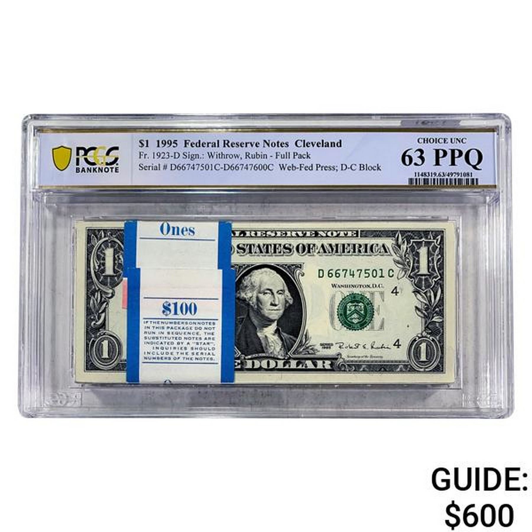 1995 $1 Federal Reserve Notes-Cleveland PCGS 63PPQ