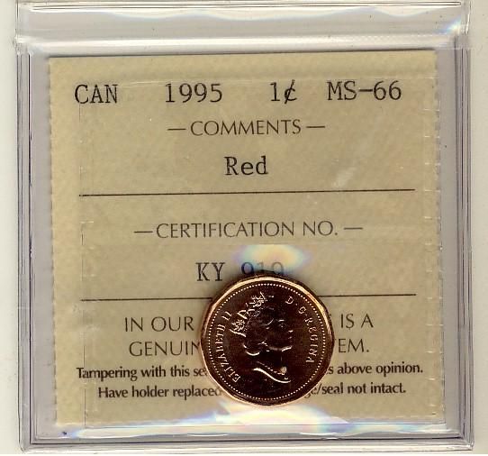 1995 1¢ ICCS MS66 Full Red, A superb GEM example.