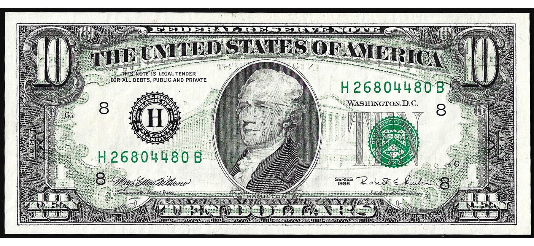 One 1995 $10 Federal Reserve Full Offset ERROR Note.