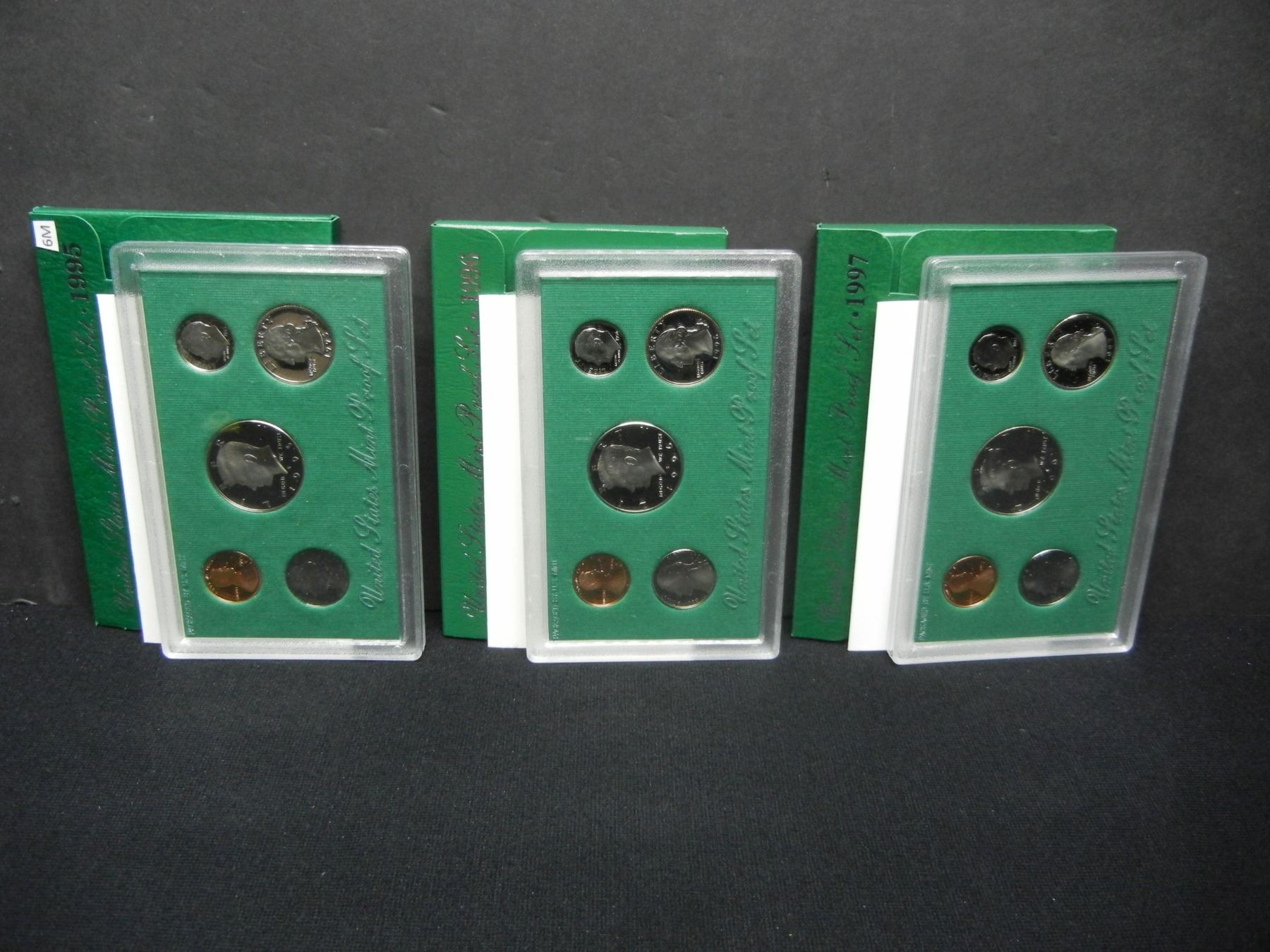 1995 1996 1997 United States Mint 5-Coin Proof Sets With Original Government Packaging & COA's.
