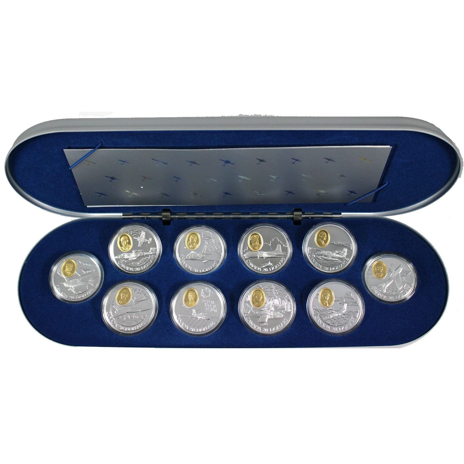 1995-1999 Canada Aviation Complete Sterling Silver Set 10-coin Set #2 in Original Deluxe Display Case