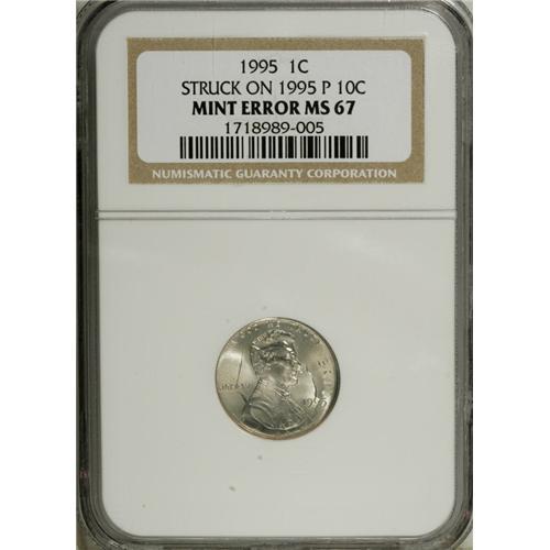 1995 1C --Struck on a 1995 Dime--MS67 NGC. Somehow, a d