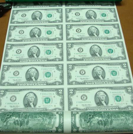1995 $2.00 Uncut Sheet of 16 Federal Reserve Notes