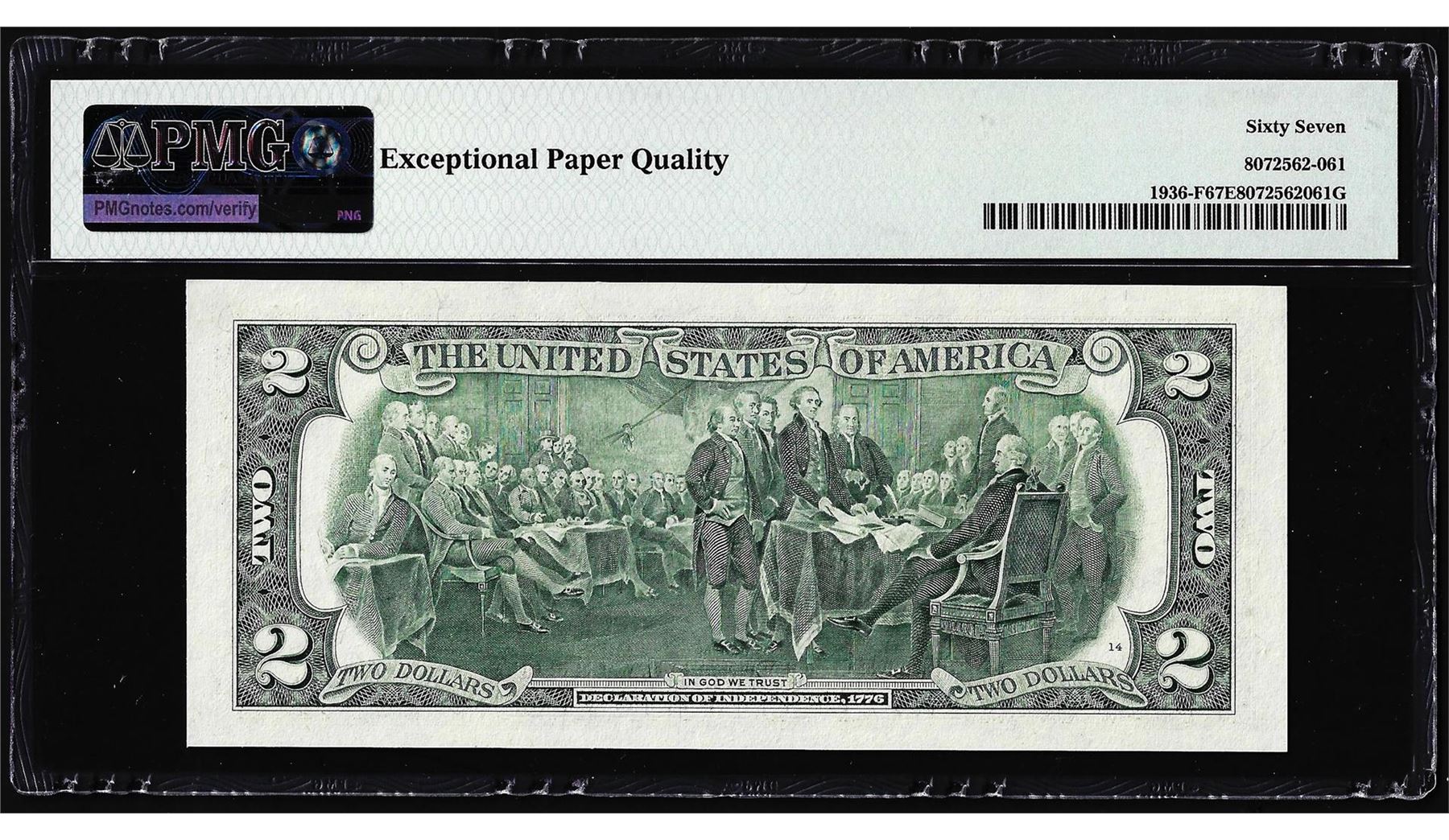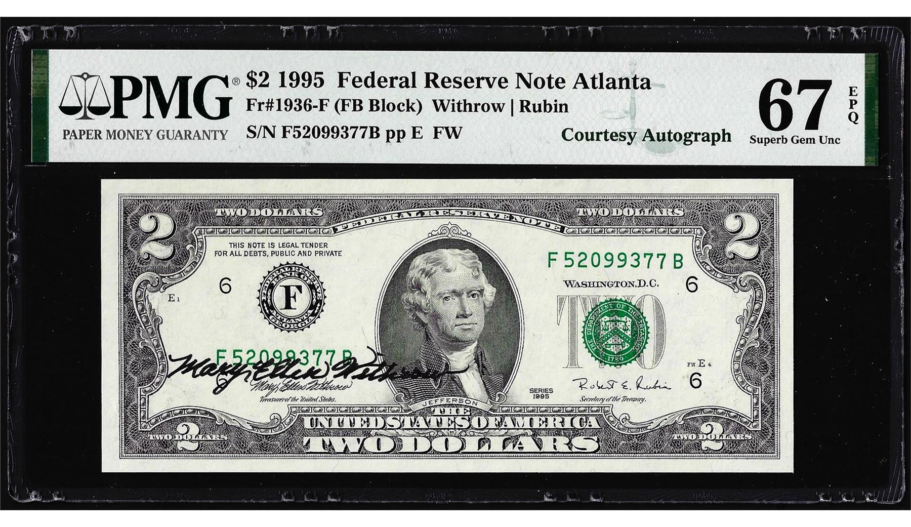 1995 $2 Federal Reserve Note PMG Superb Gem Uncirculated 67EPQ Courtesy Autograph