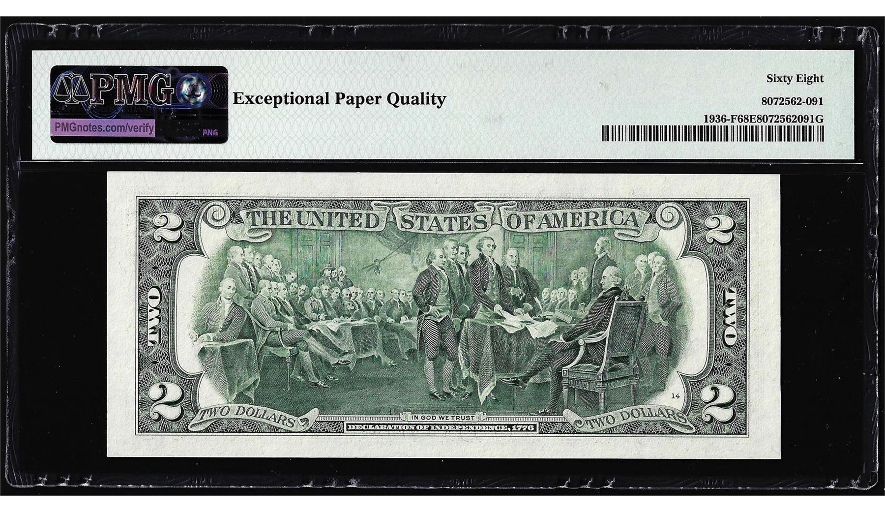 One 1995 $2 Federal Reserve Note PMG Superb Gem Uncirculated 68EPQ Courtesy Autograph. PMG Certified.