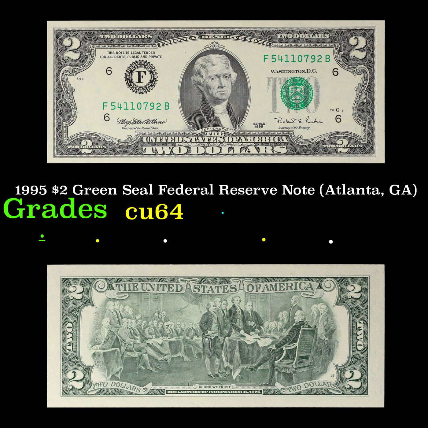 1995 $2 Green Seal Federal Reserve Note (Atlanta, GA) Grades Choice CU.
