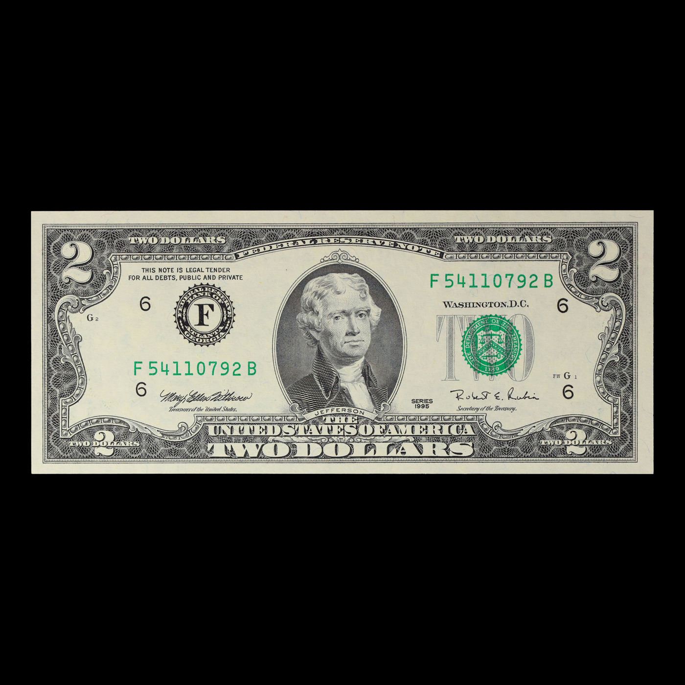 1995 $2 Green Seal Federal Reserve Note (Atlanta, GA) Grades Choice CU