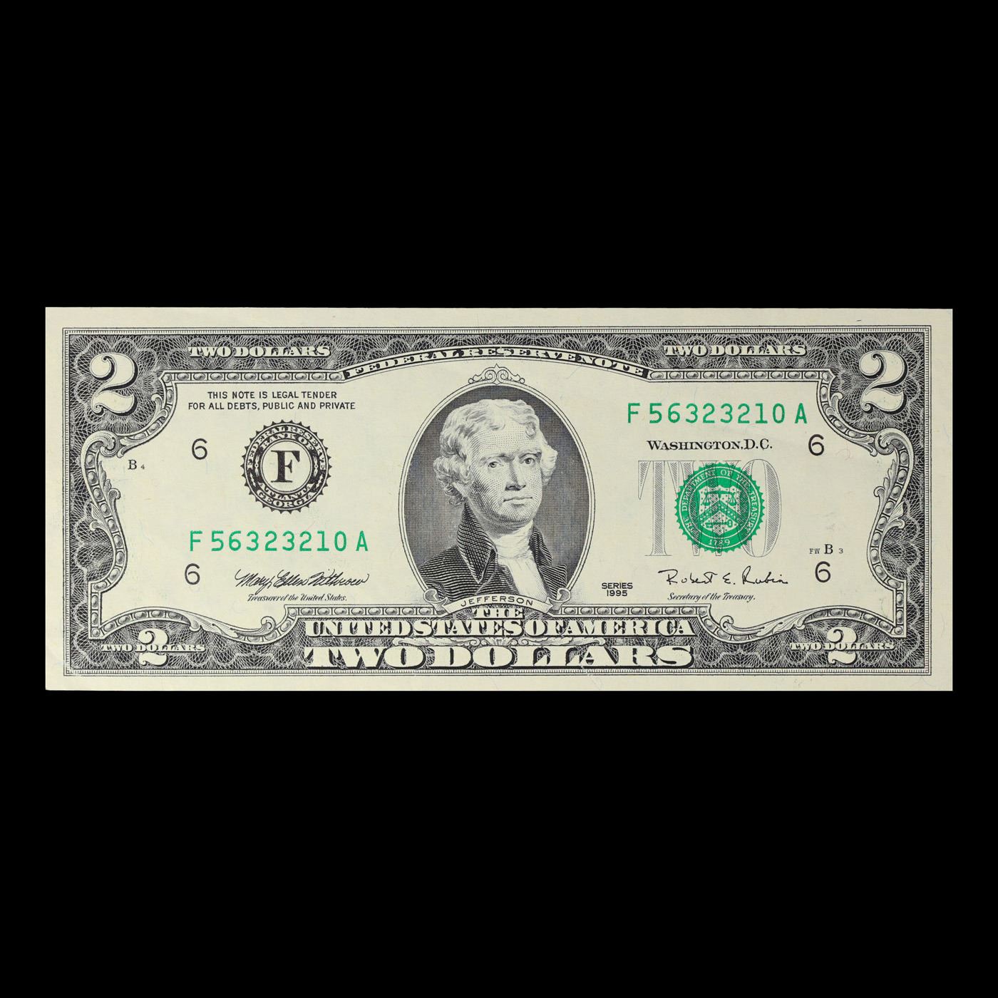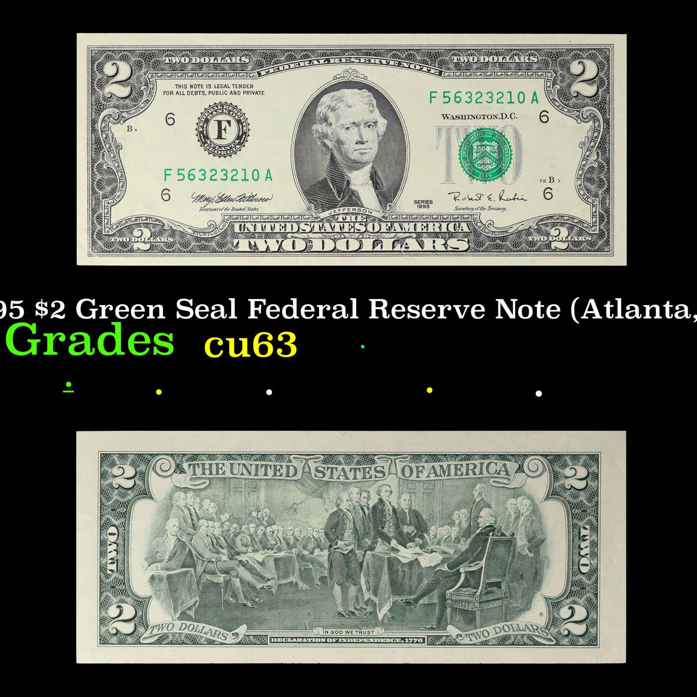 1995 $2 Green Seal Federal Reserve Note (Atlanta, GA) Grades Select CU