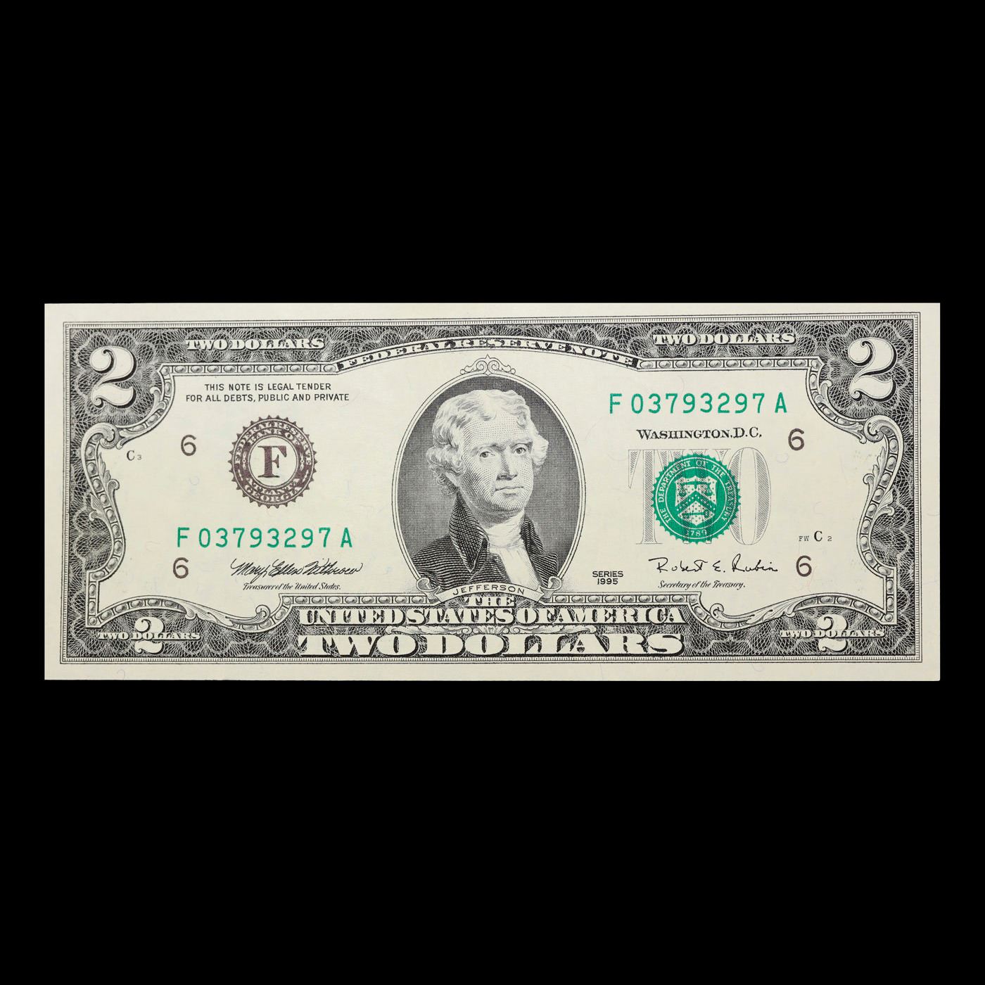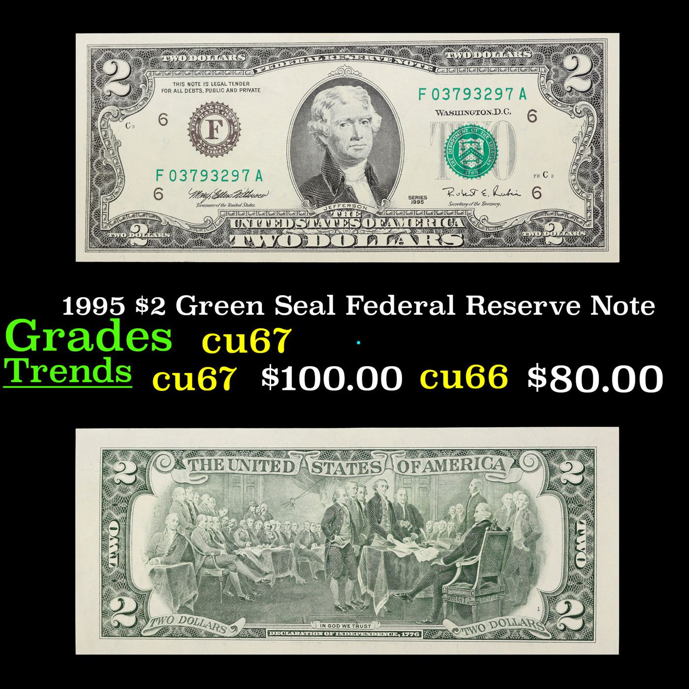 1995 $2 Green Seal Federal Reserve Note Grades Gem++ CU.