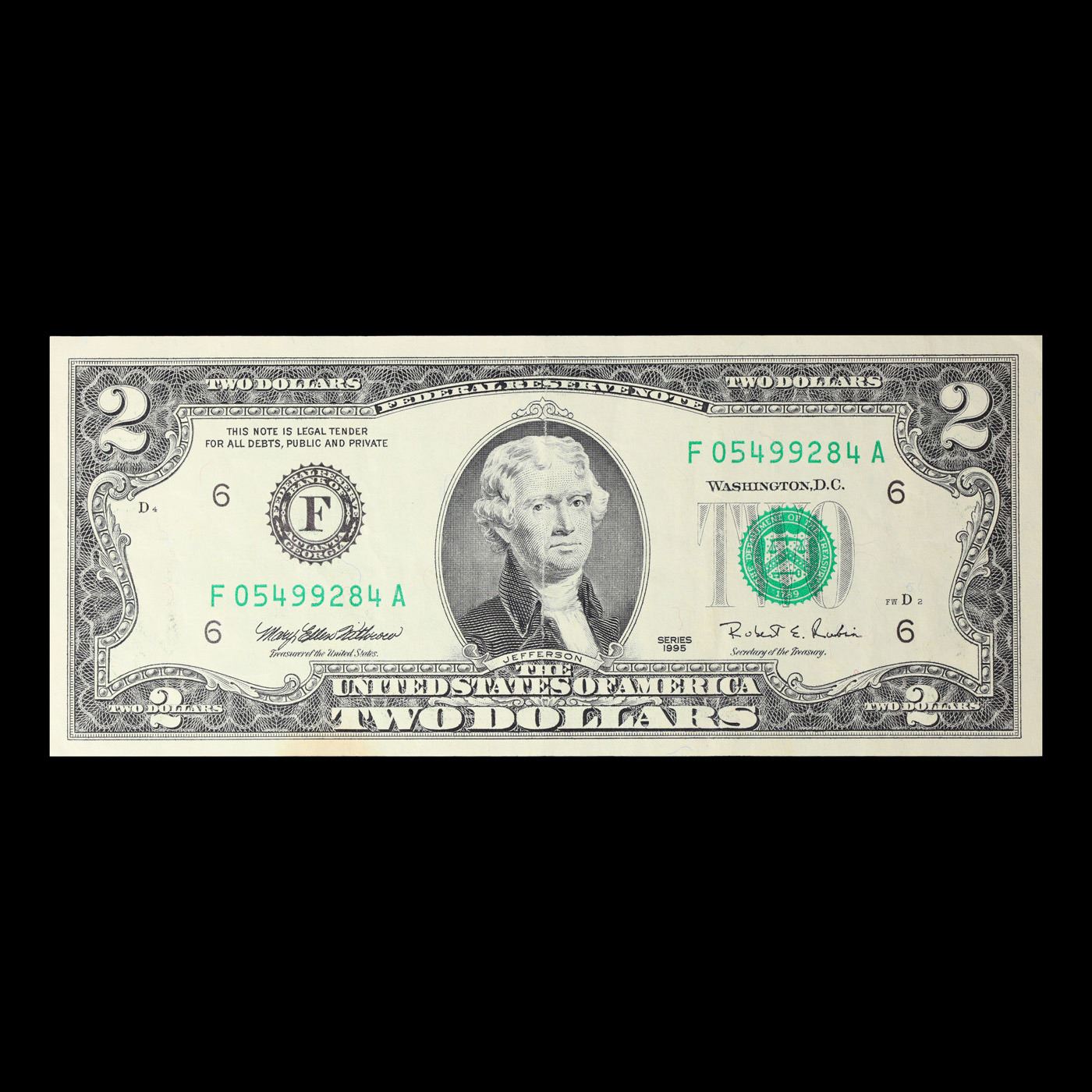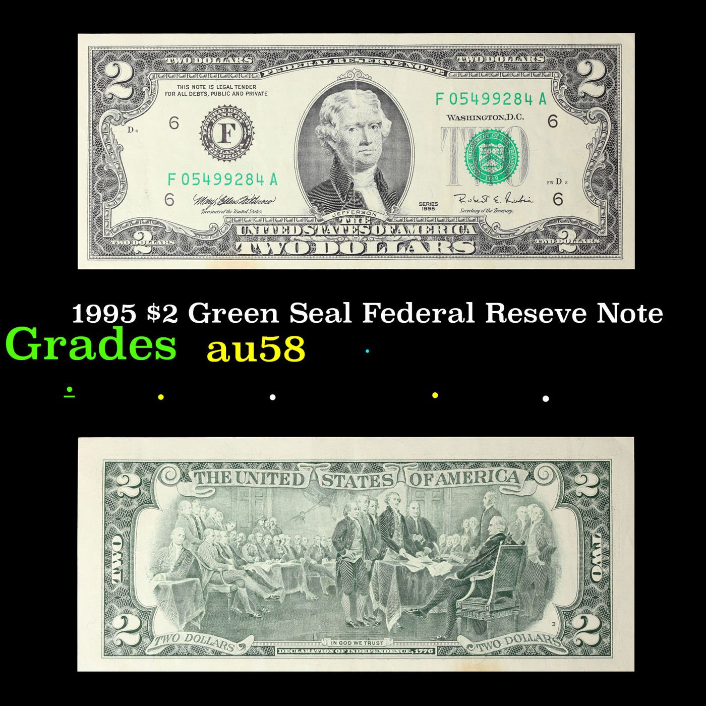 1995 $2 Green Seal Federal Reseve Note Grades Choice AU/BU Slider.