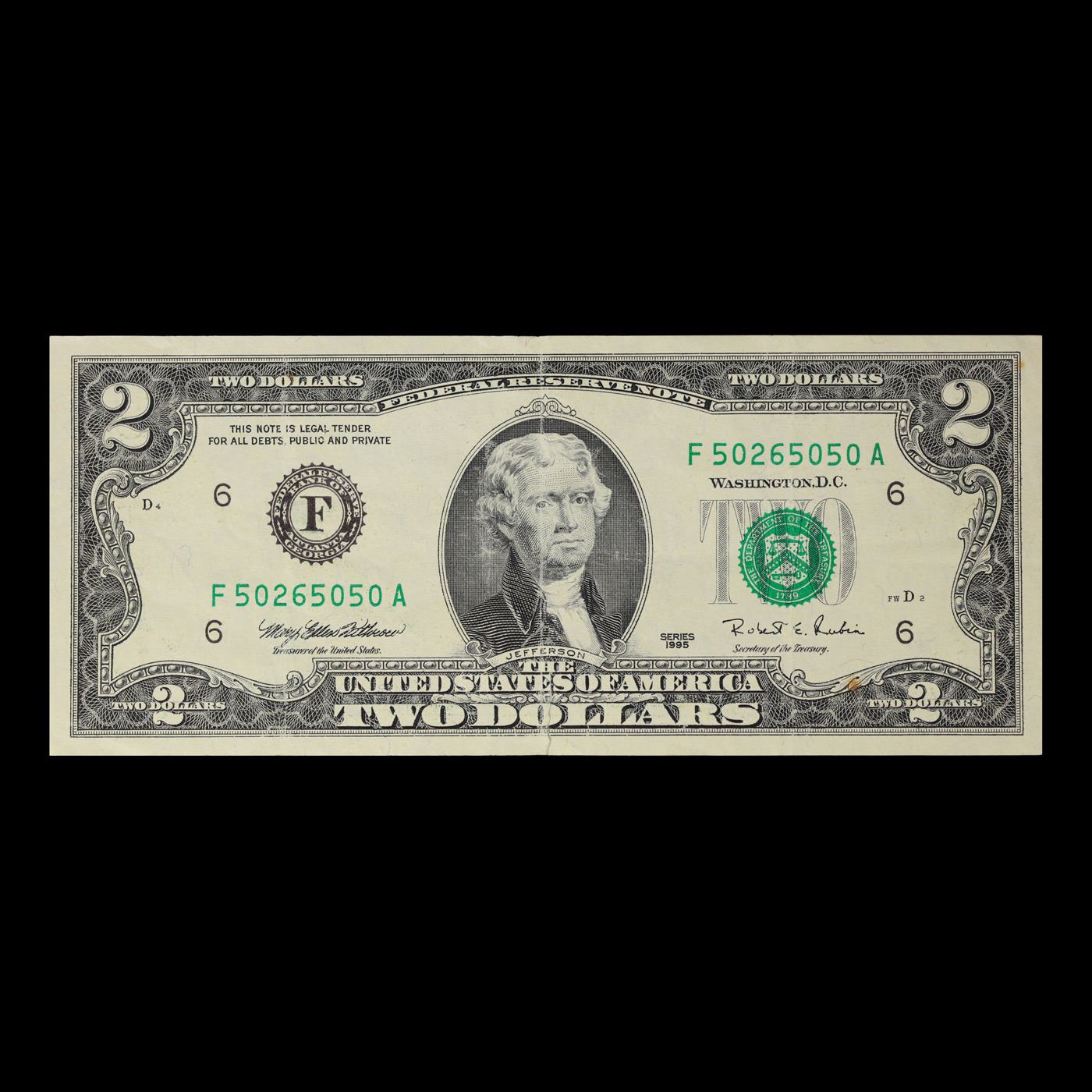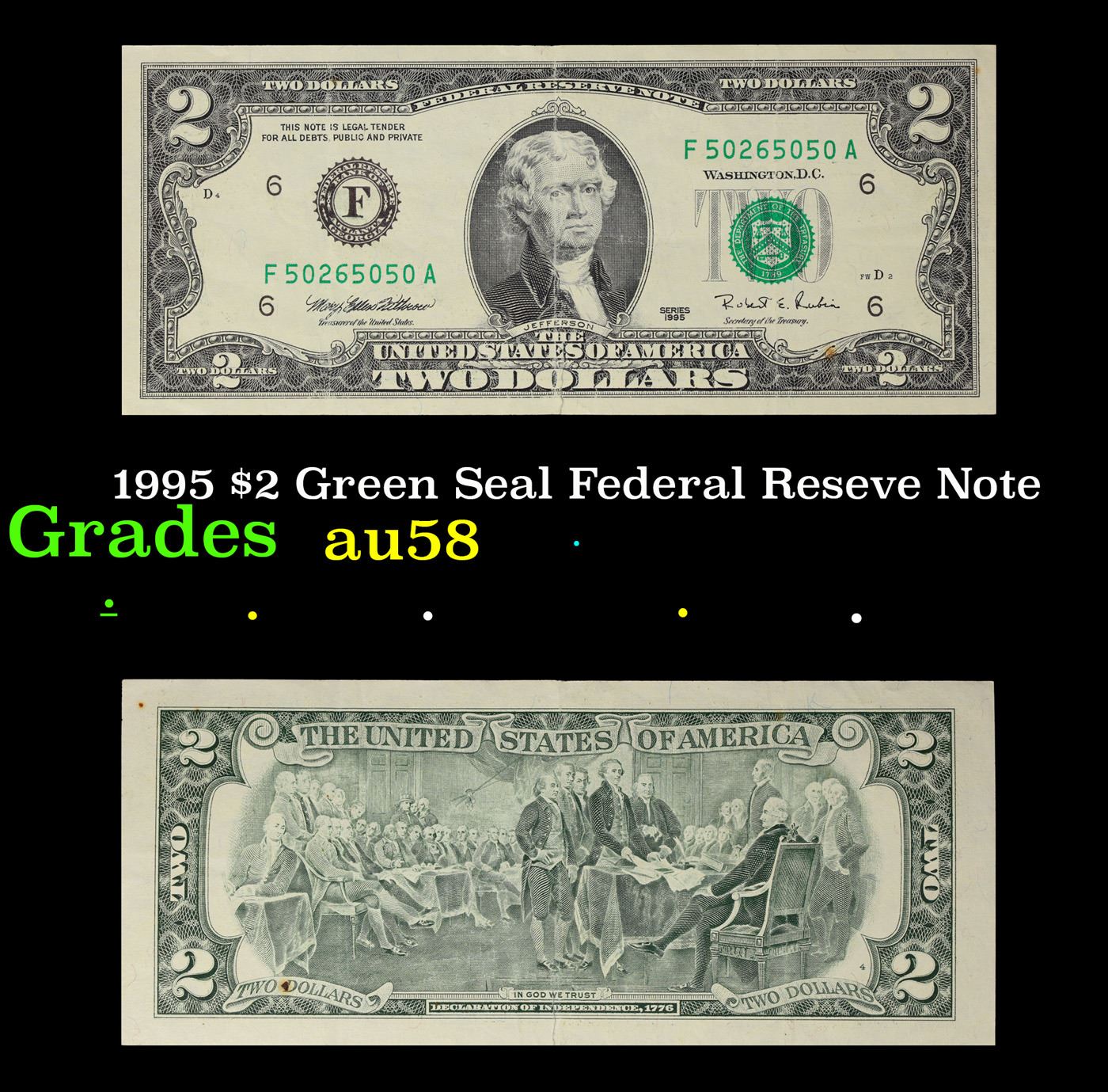 1995 $2 Green Seal Federal Reseve Note Grades Choice AU/BU Slider.