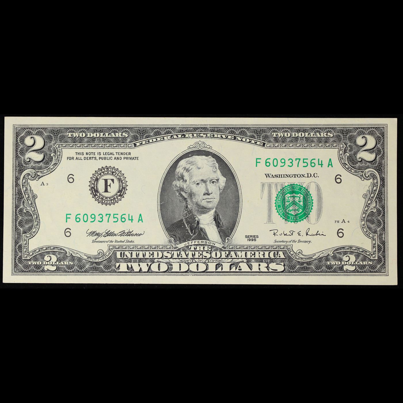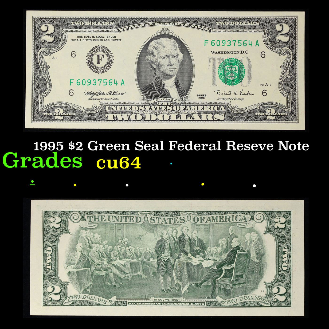 1995 $2 Green Seal Federal Reseve Note Grades Choice CU.