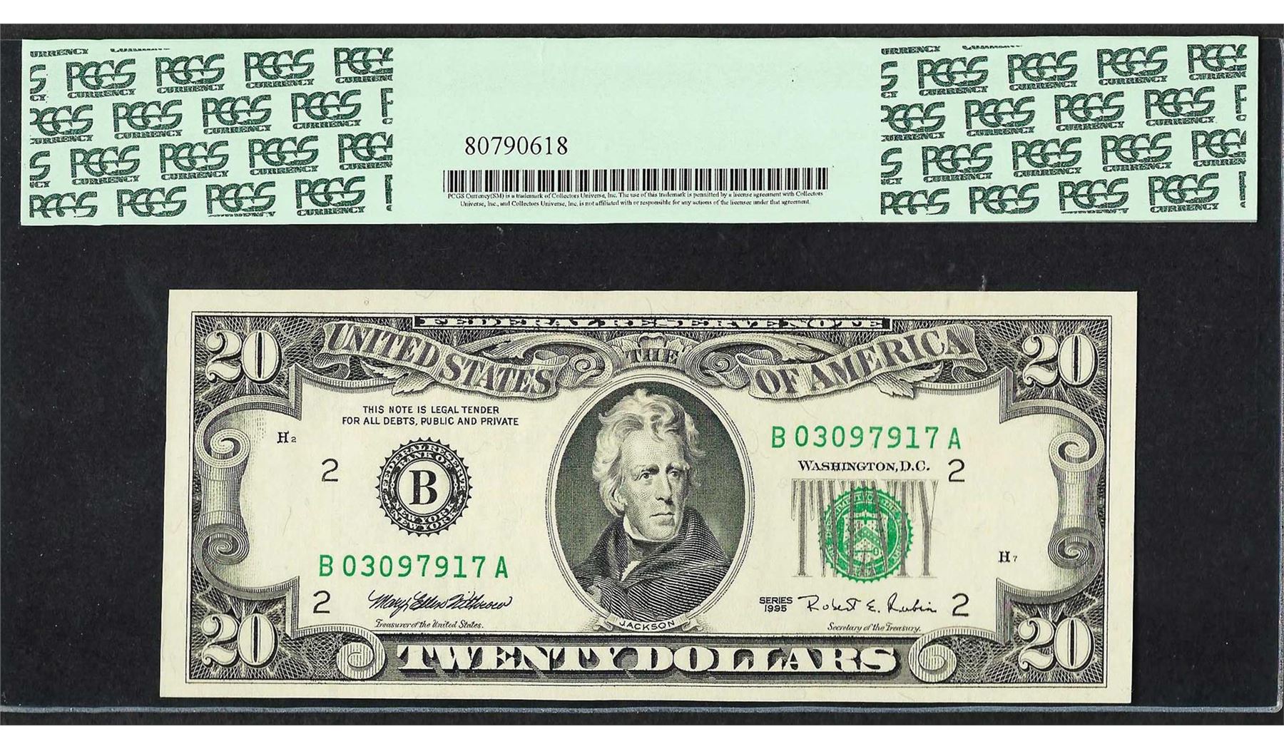1995 $20 Federal Reserve Note ERROR Insufficient Inking PCGS Choice About New 58