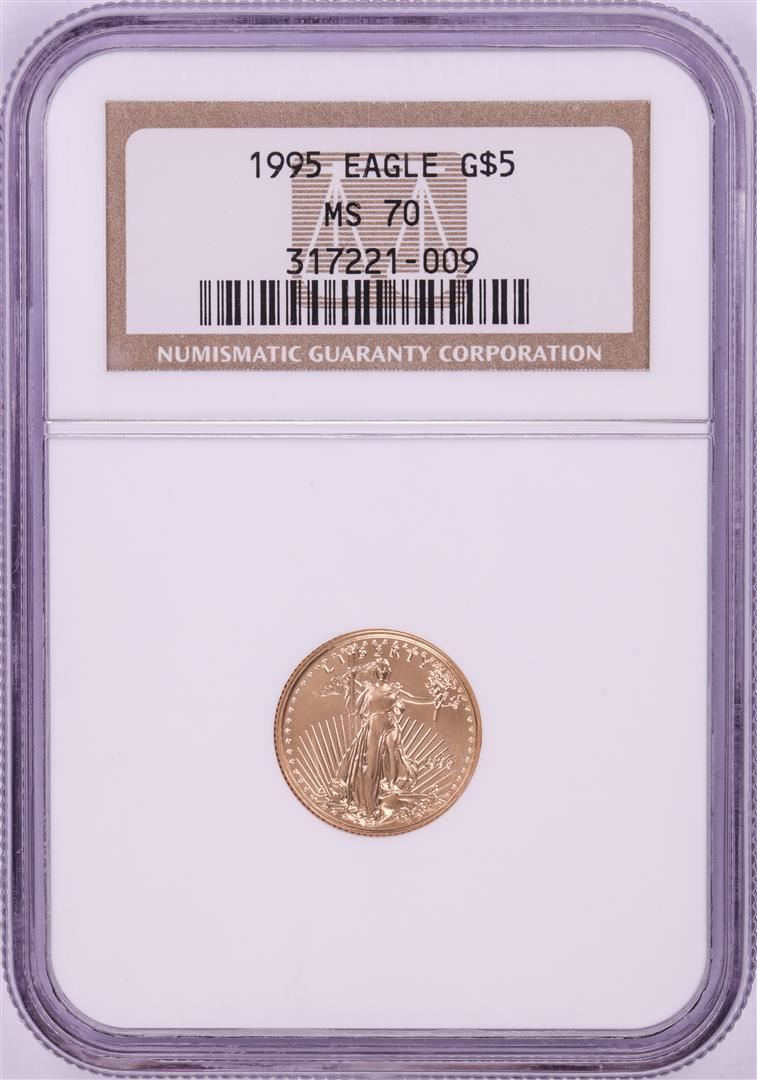 One 1995 $5 American Gold Eagle Coin NGC MS70. NGC Certified.