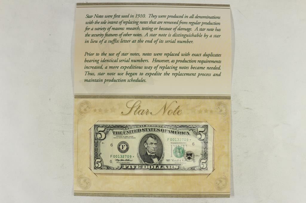 1995 $5 FRN STAR NOTE ORIGINAL BEP PACKAGING