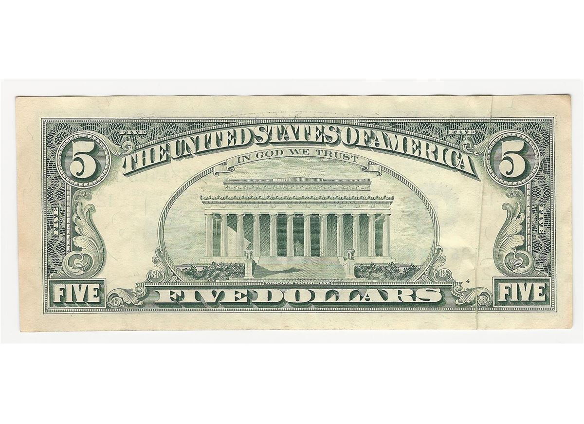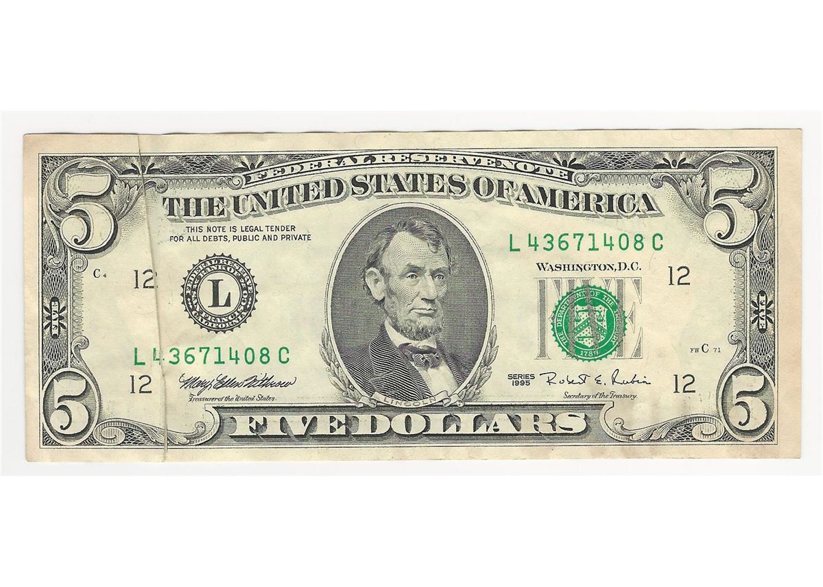 One 1995 $5 Federal Reserve Note Gutterfold ERROR.