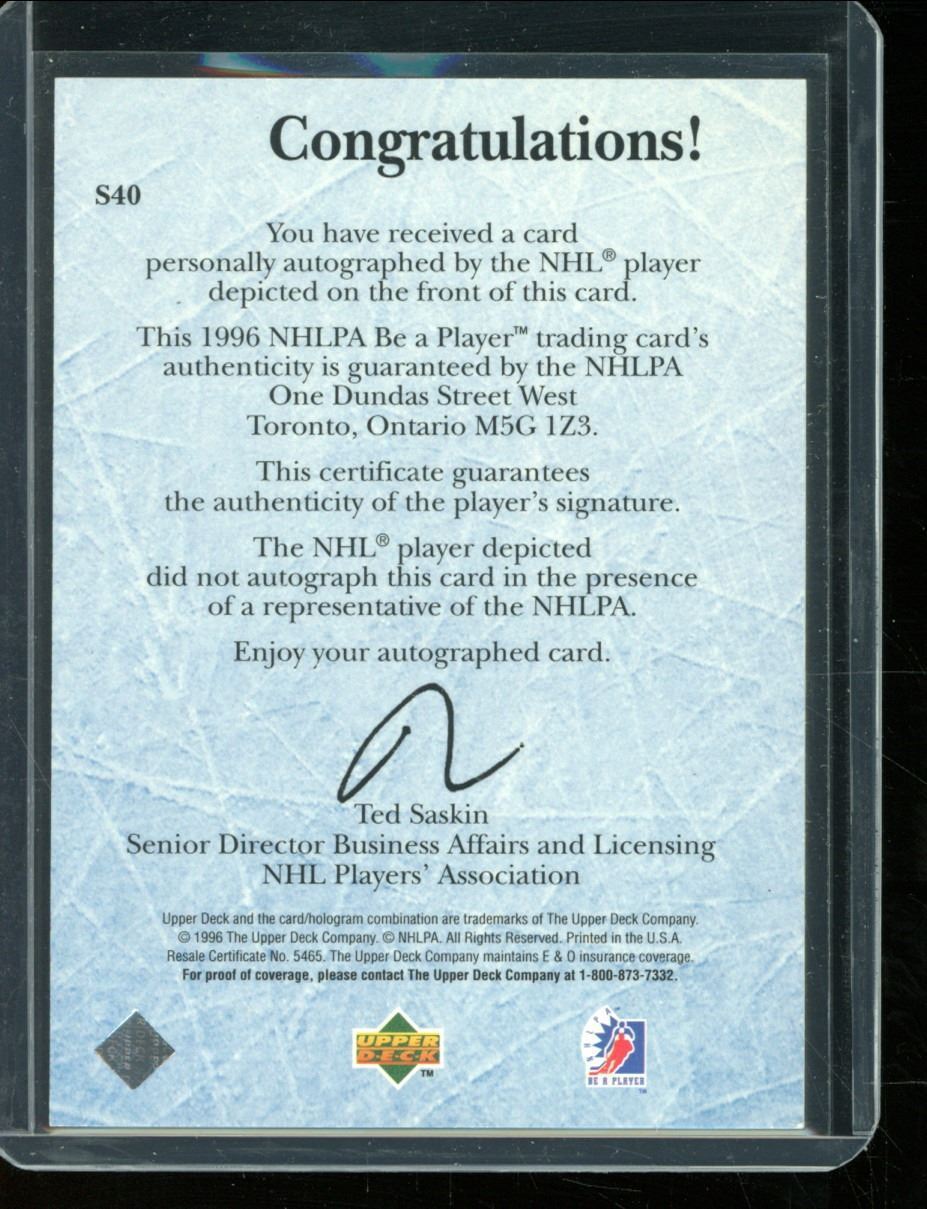1995-96 Be A Player Autographs #S40 Kevin Lowe