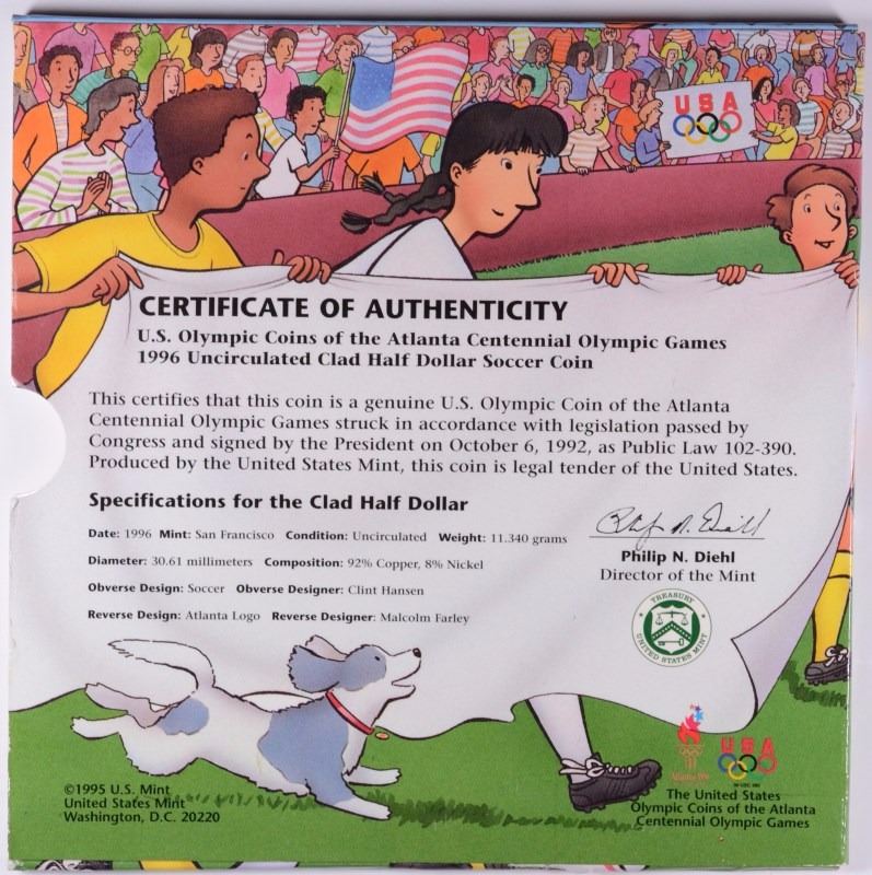 1995 ATLANTA OLYMPICS UNC SOCCER COMMEMORATIVE HALF DOLLAR, YOUNG COLLECTORS SET