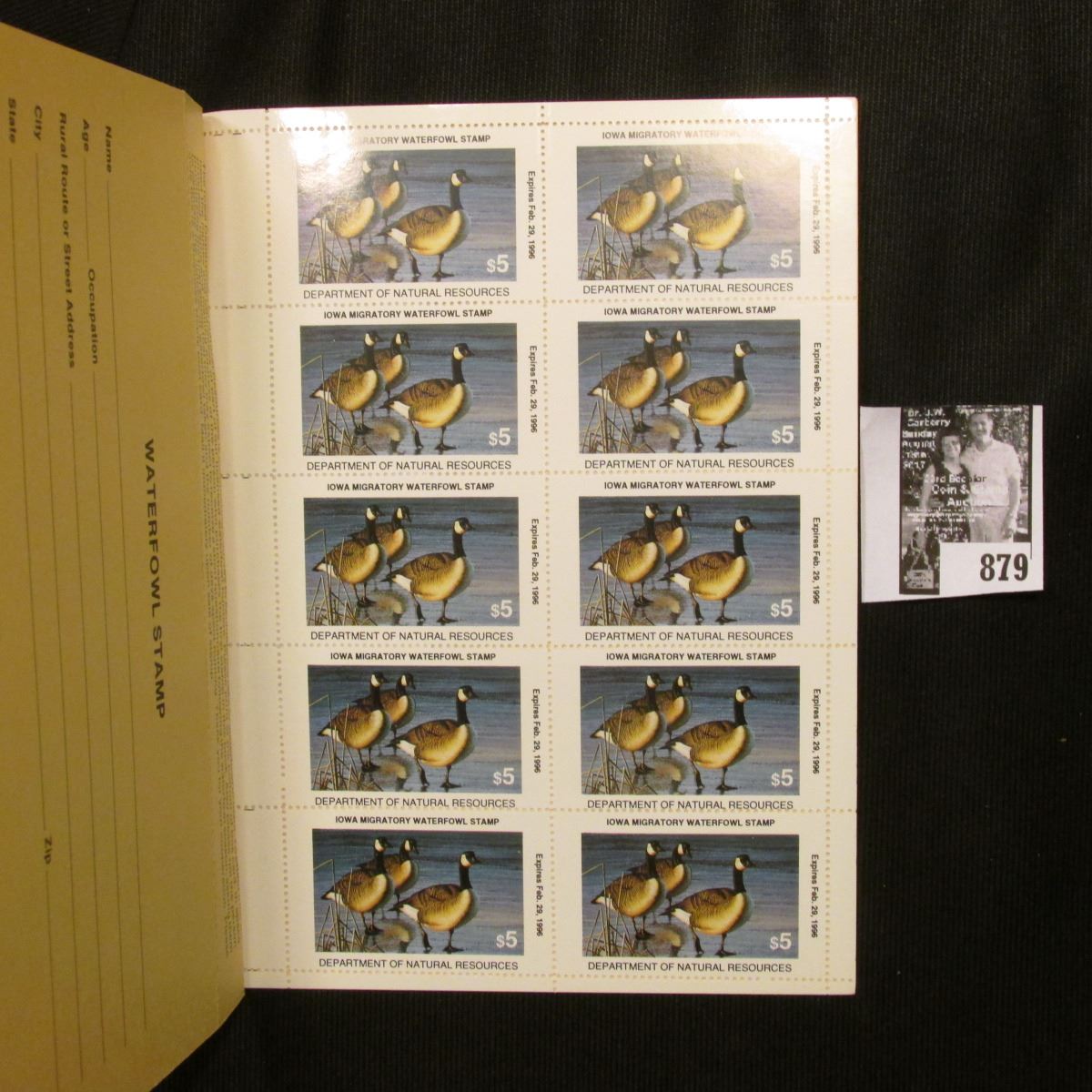 1995 Booklet Pane of Ten Iowa Duck Stamps in folder No. 2717. Crisp Uncirculated.