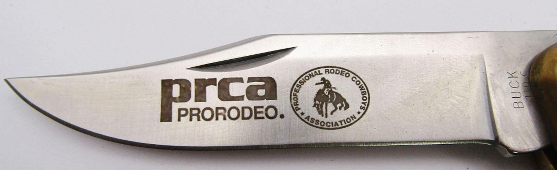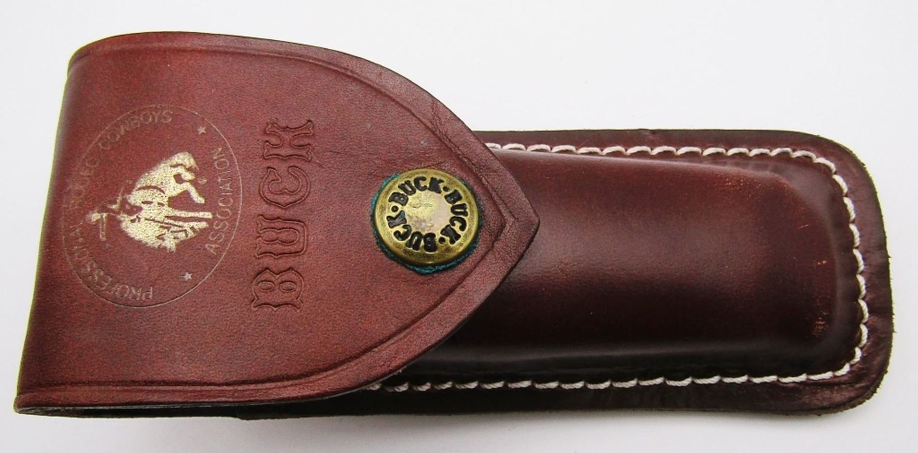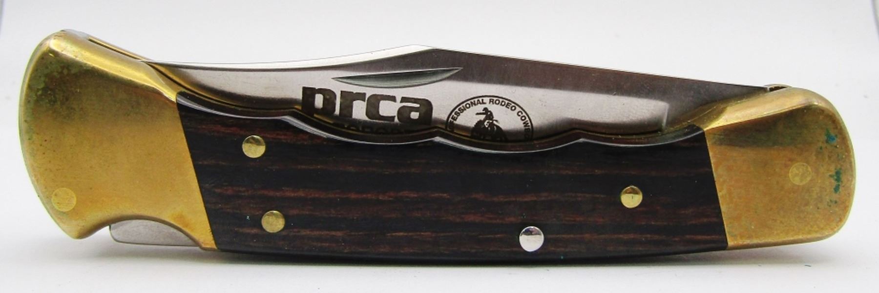 Marked Professional Rodeo Cowboys Association on Knife Blade & on Leather Sheath! Lightly Used Condition!