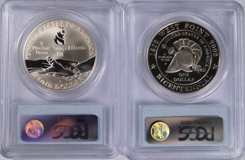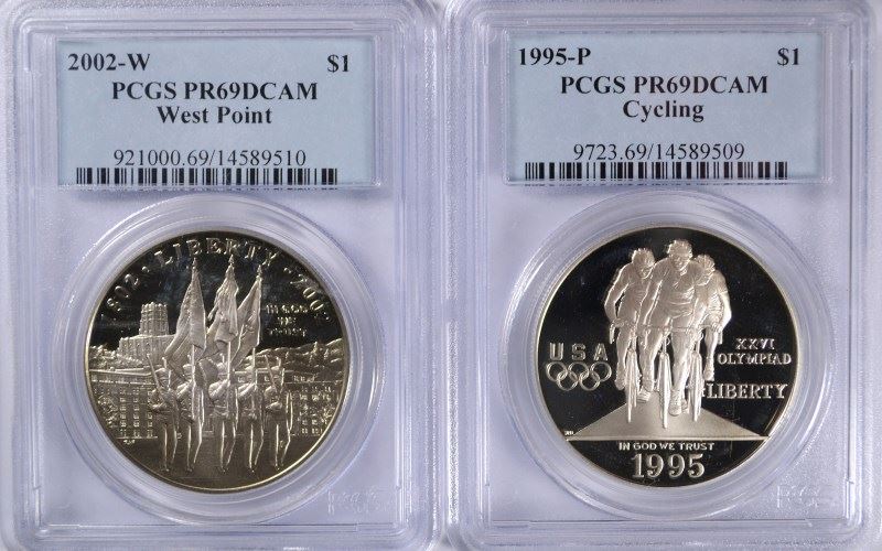 1995 CYCLING & 2002-W WEST POINT COMMEM SILVER DOLLARS: BOTH PCGS PR-69 DCAM