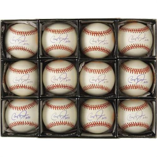 <B>1995 Cal Ripken, Jr. Single Signed "2,131" Baseballs Lot of 12.</B></I> When the Iron Man overtook the Iron Horse in the most impressive display of fortitude and dedication the game has ever seen, special OAL (Budig) baseballs were printed to be used at the event. Here we present a dozen of these baseballs, each signed on the sweet spot in 9/10 or better blue ink by the man of the hour, who adds the historic "2131" notation as well. Each bears Ripken's personal holographic authenticating sticker. A terrific dealer's lot, or an investment for the future. <I>LOA from PSA/DNA. LOA from James Spence Authentication.</B></I> <BR><BR><b>Shipping:</b> Balls, Pucks, etc., Small (<a target="_blank" href="http://www.heritageauctions.com/common/shipping.php">view shipping information</a>)