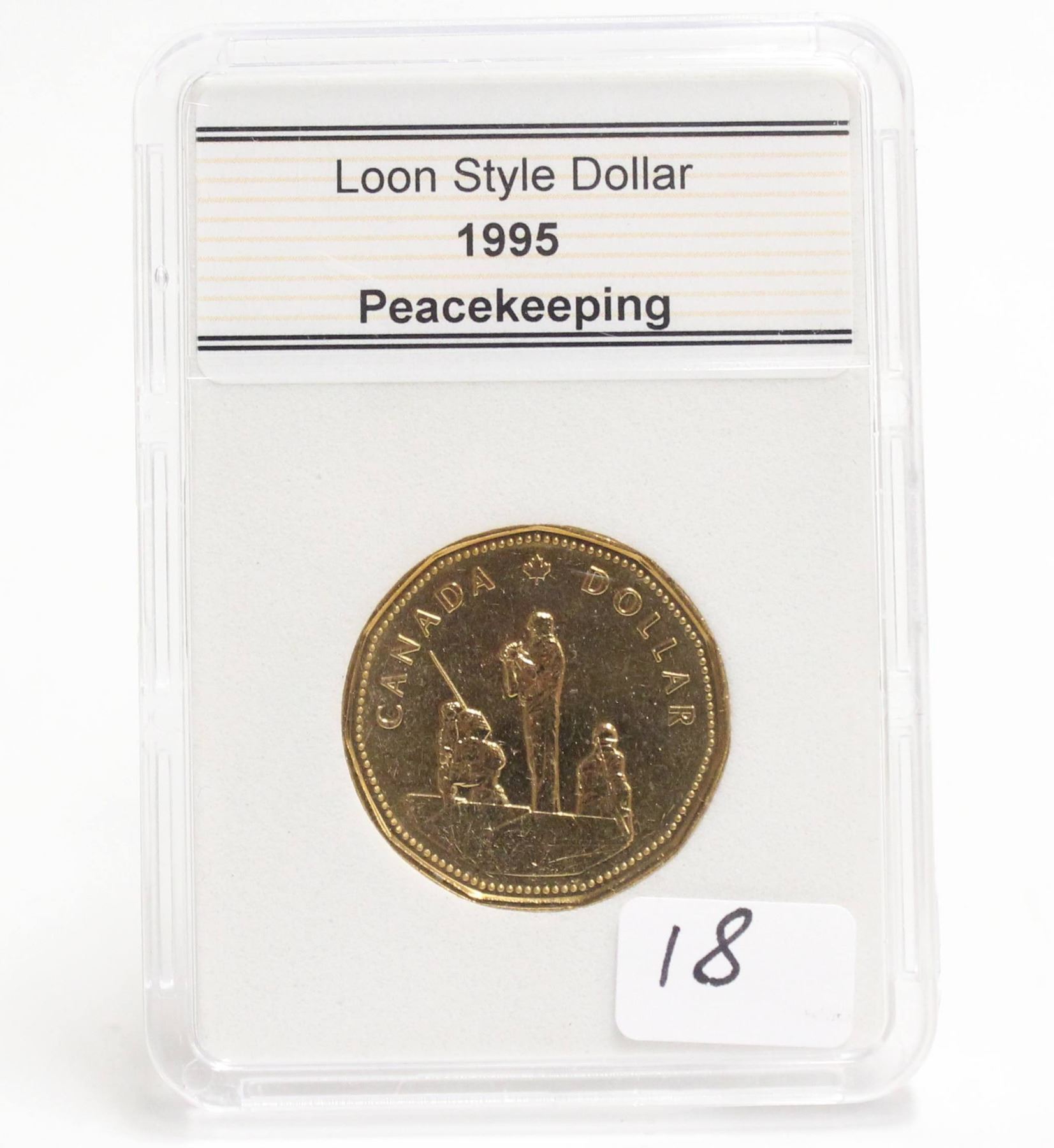 1995 Canada $1.00 Peacekeeping Loonie Dollar Coin Slab Capsule Case
