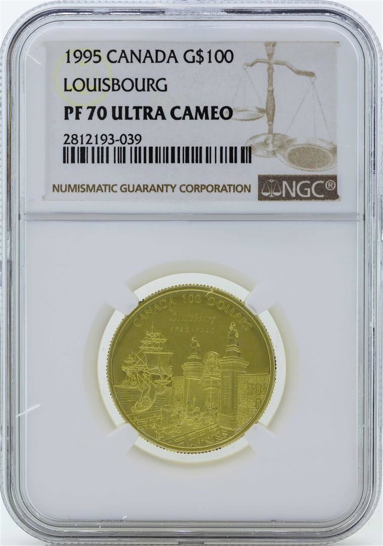 One 1995 Canada $100 Louisbourg Gold Coin NGC PF70 Ultra Cameo. NGC Certified.