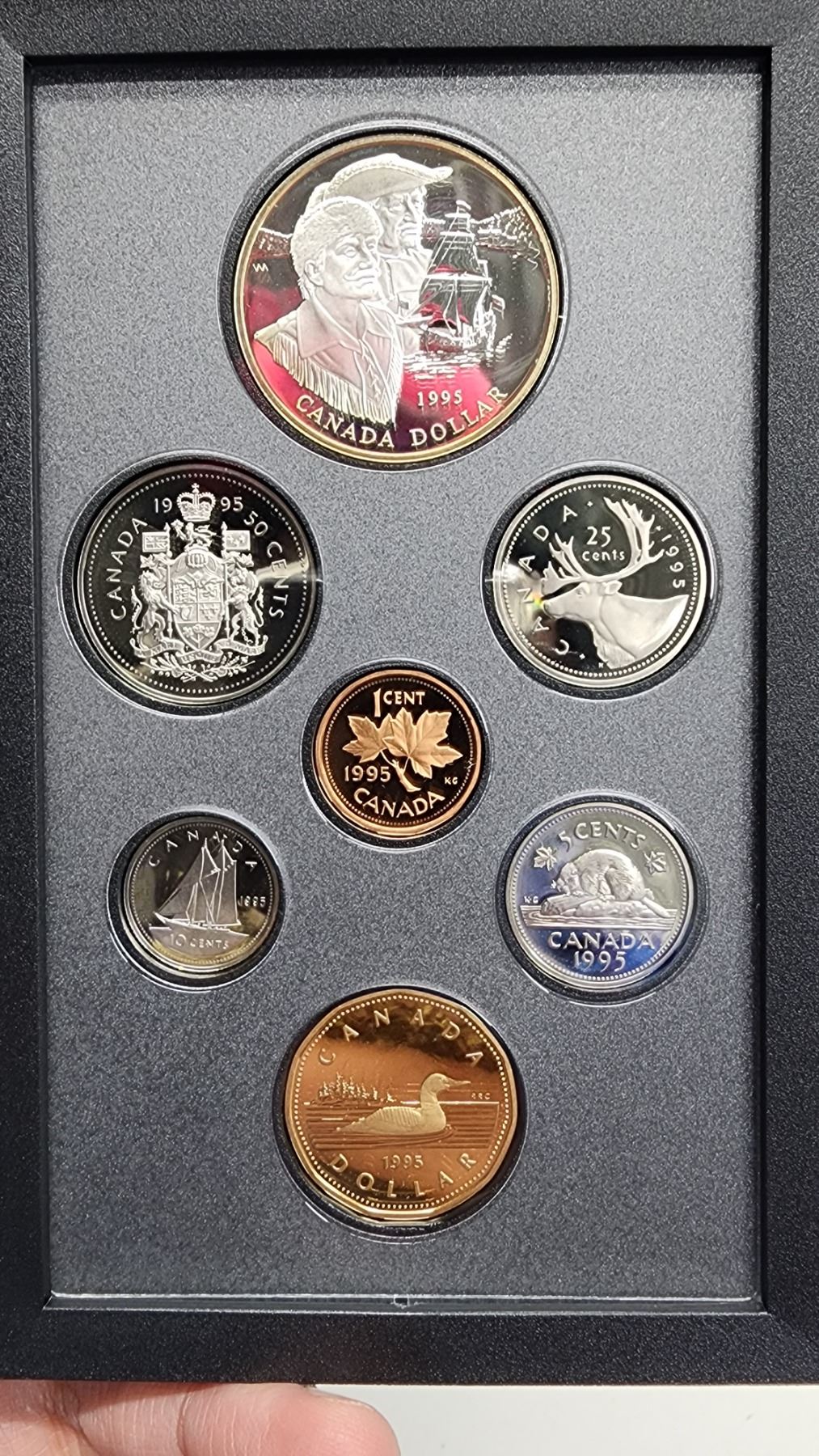 1995 Canadian coin proof set - 325th anniversary of the founding of The Hudson bay co. - 92.5% silver dollar