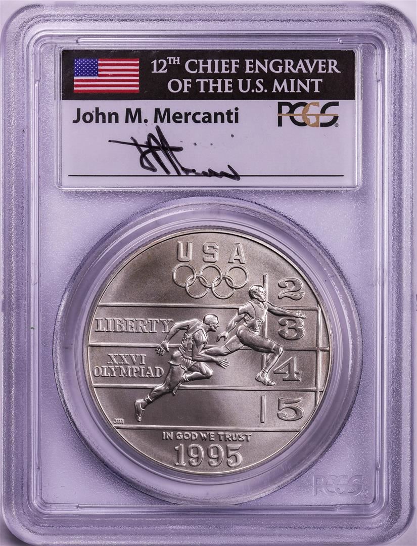 1995-D $1 Olympic Track & Field Silver Dollar Coin PCGS MS70 Mercanti Signature