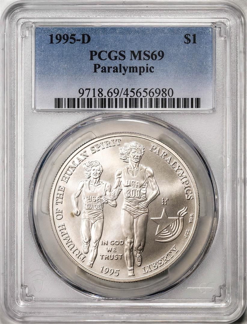 One 1995-D $1 Paralympics Commemorative Silver Dollar Coin PCGS MS69. PCGS Graded.
