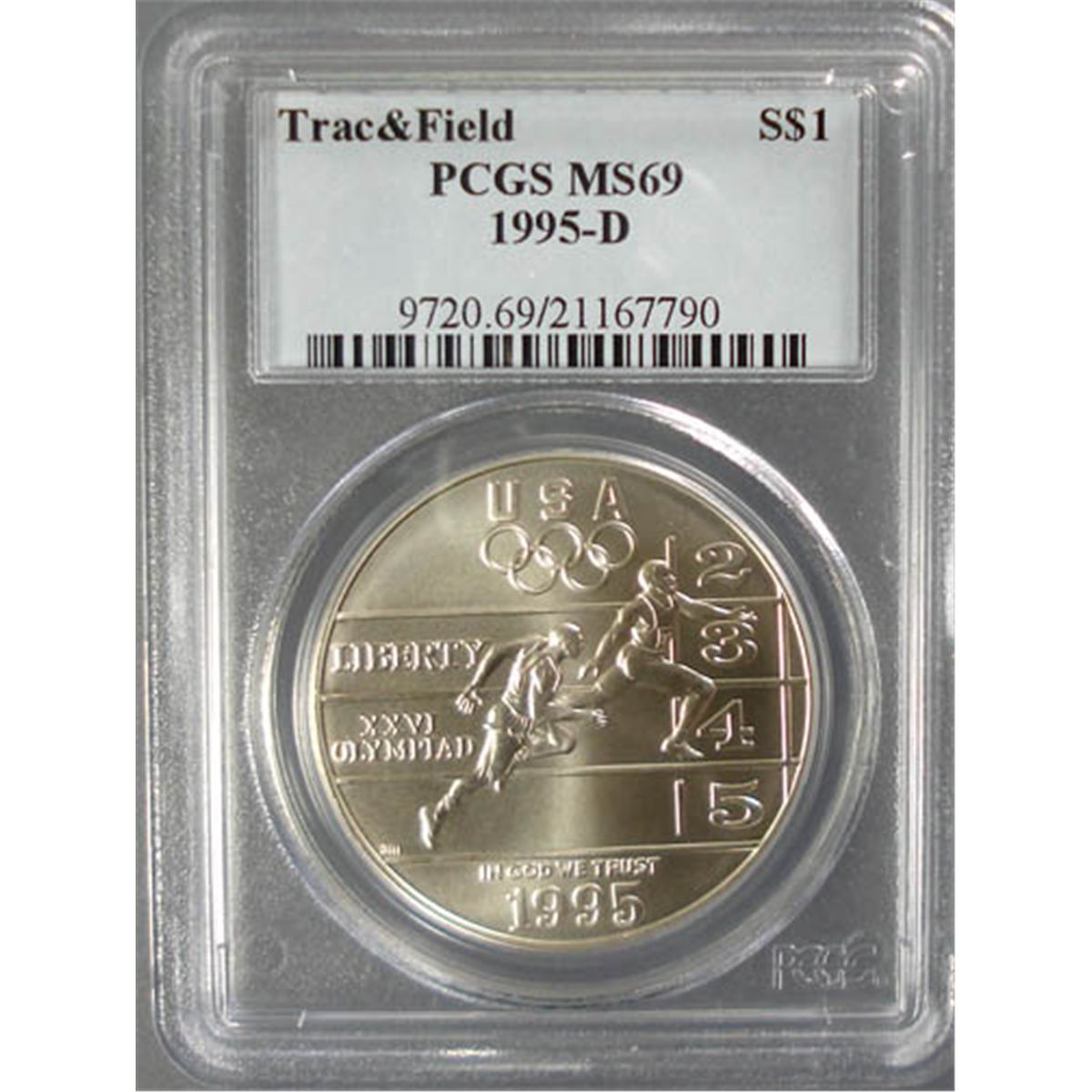 1995-D ATLANTA OLYMPICS TRACK AND FIELD COMMEMORATIVE SILVER DOLLAR, PCGS MS69!