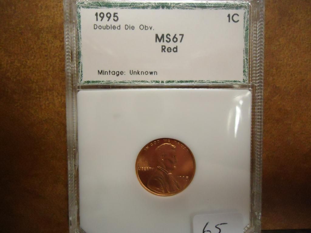 1995 DOUBLED DIE OBV. LINCOLN CENT PCI MS67 RED