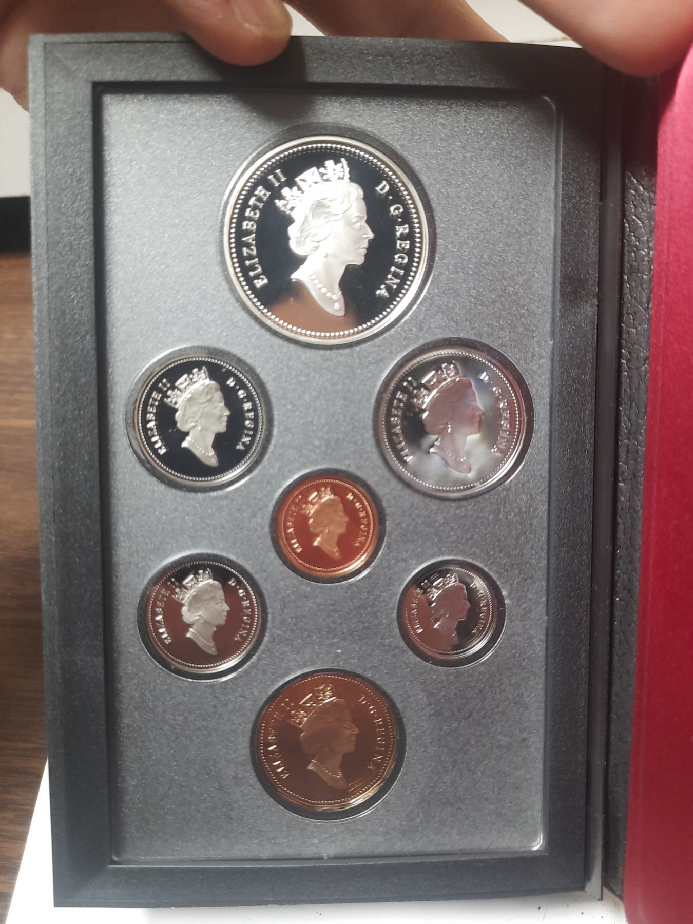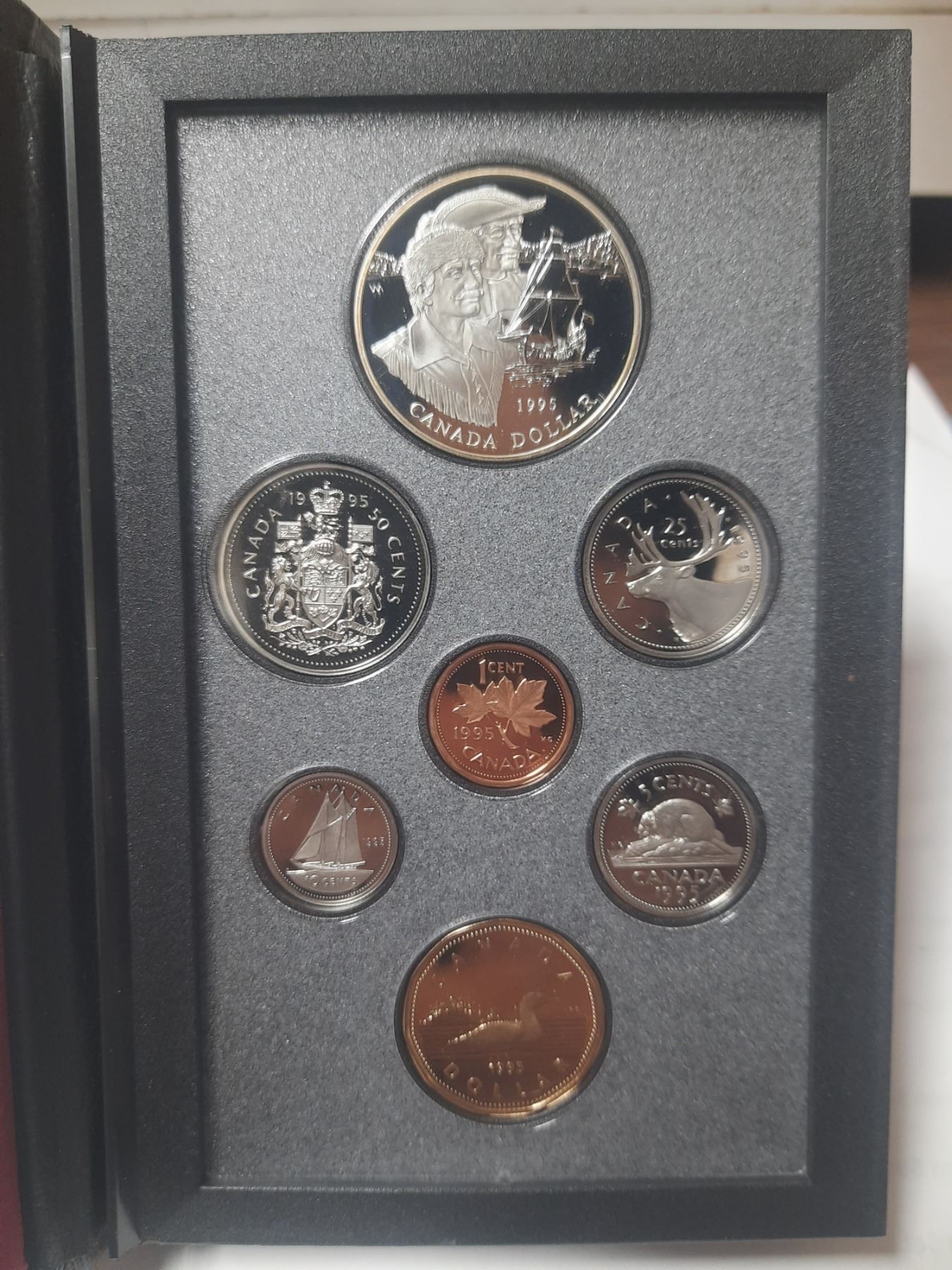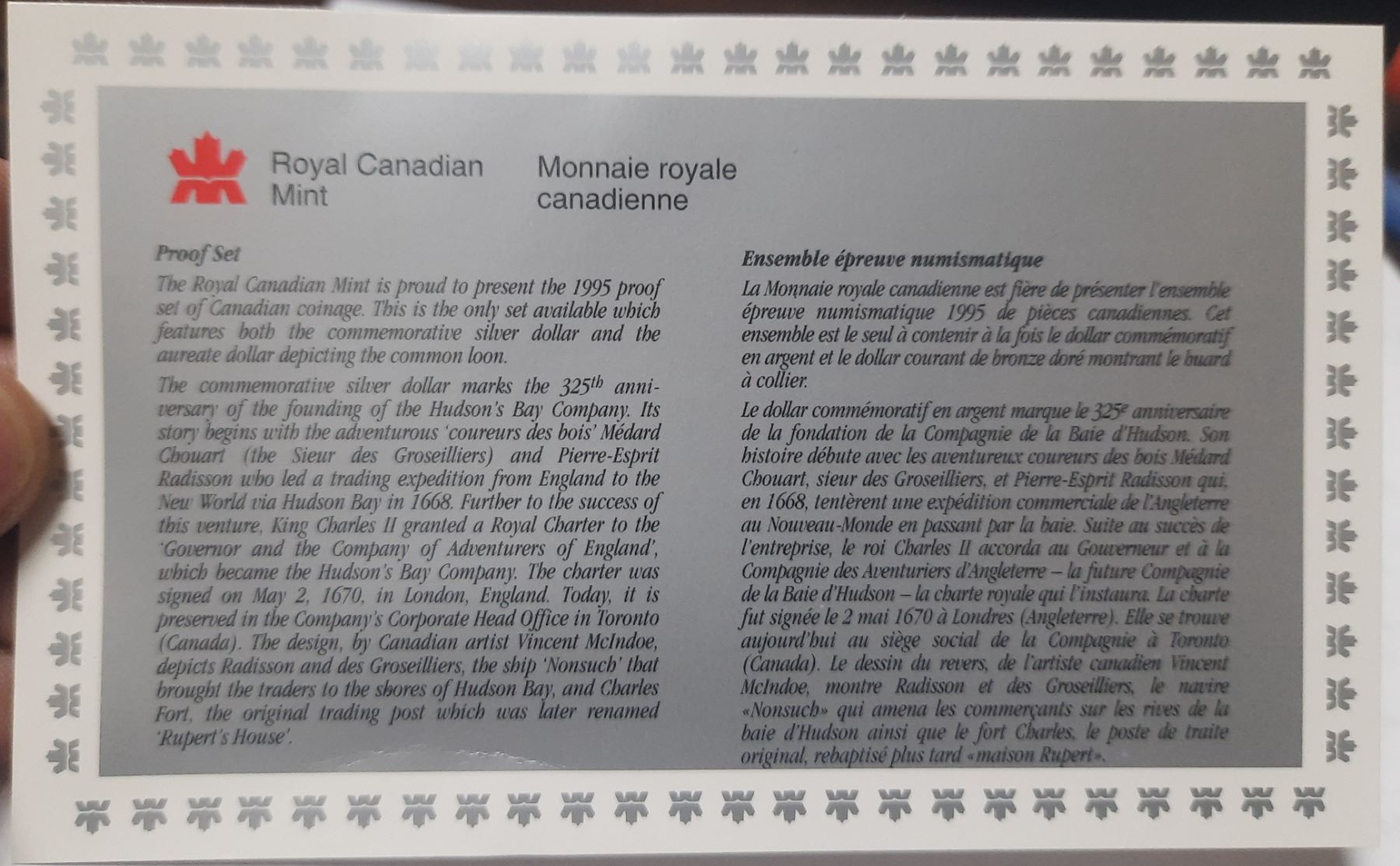 1995 Double Dollar Proof Set. 7-coin set includes a Sterling Silver Dollar that commemorates the 325th Anniversary of the Hudson’s Bay Company. Proof with Ultra Heavy Cameos.