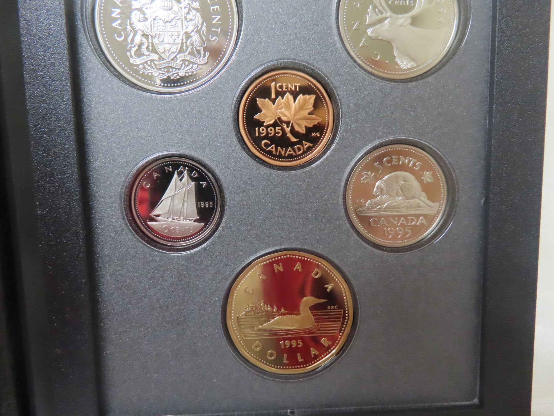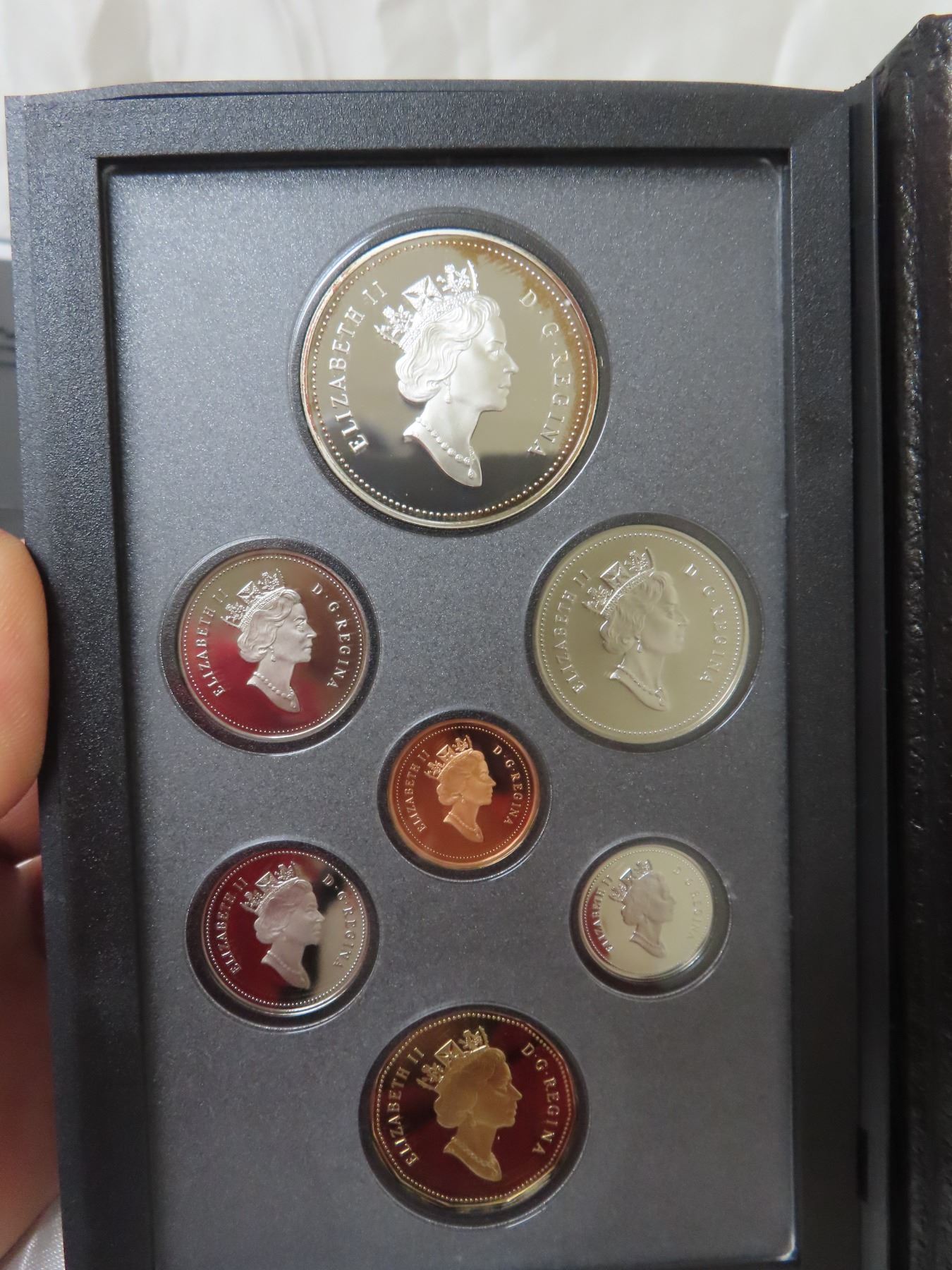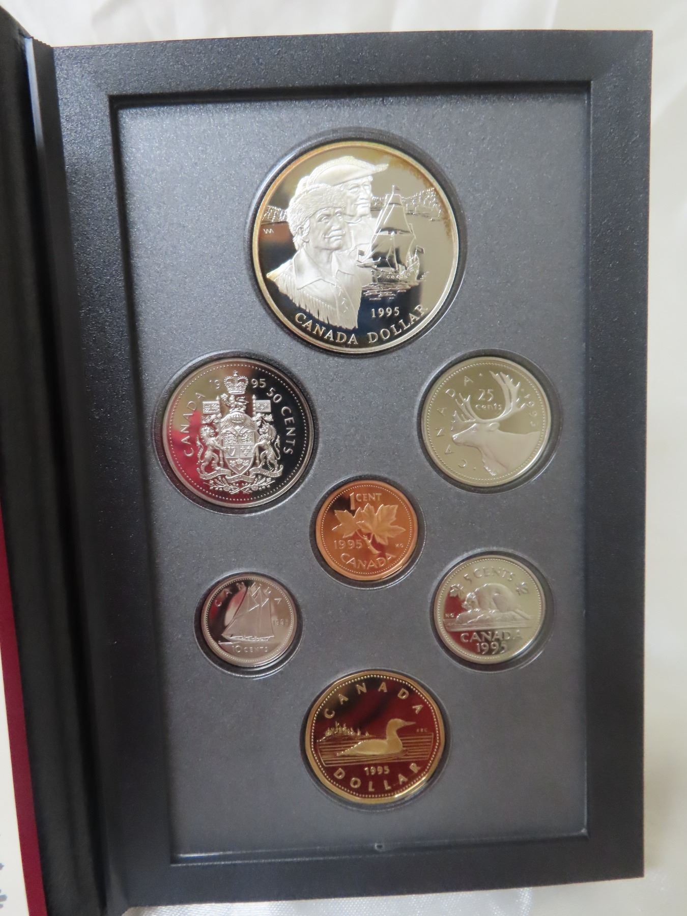 1995 Double Dollar Proof Set. Silver Dollar marks the 325h Anniversary of the founding of the Hudson’s Bay Company. 7-coin Proof Set. All coins have Ultra Heavy Cameos. Housed in its original Royal Canadian Mint case of issue. Includes Certificate of Authenticity.
