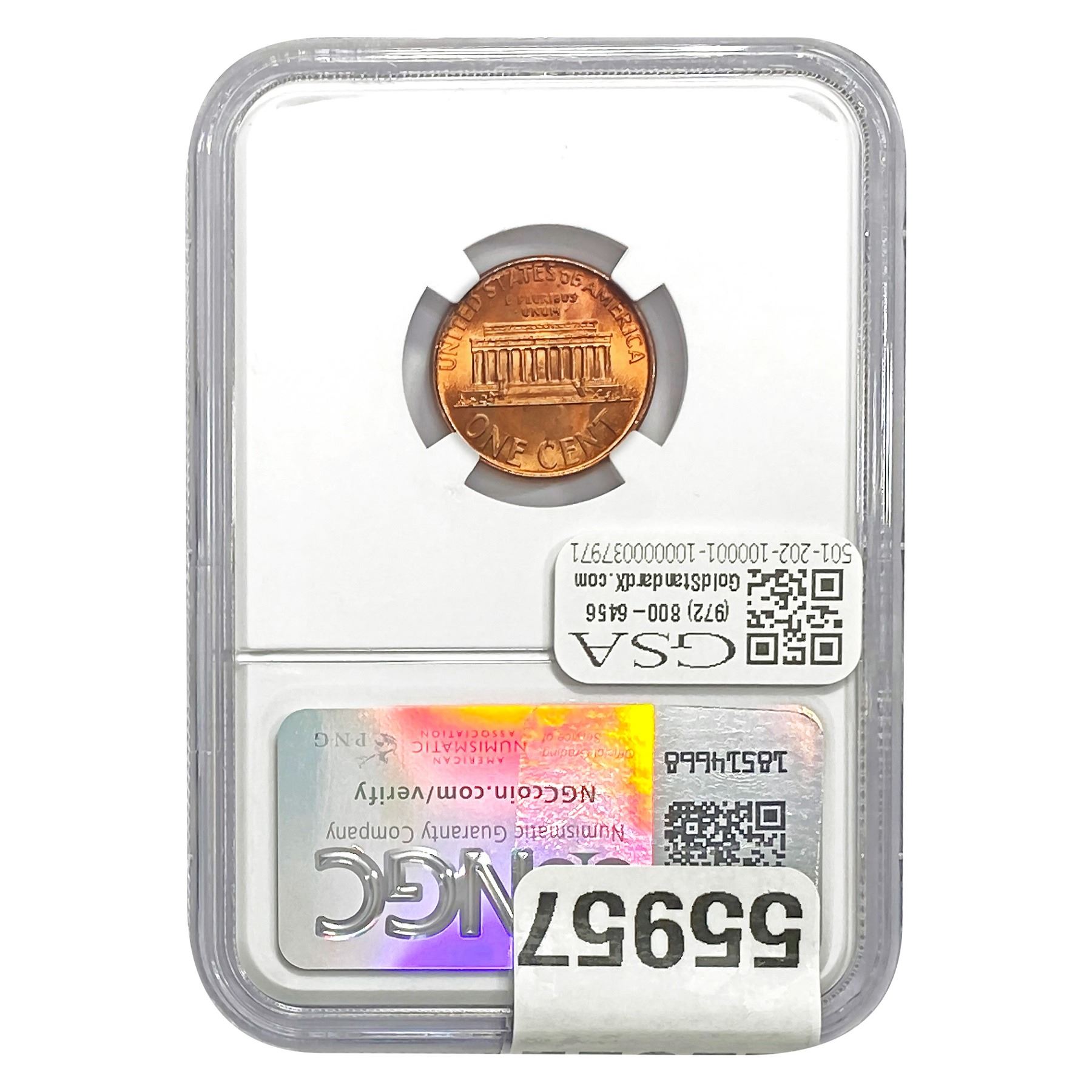 e. Coins sold referencing a third-party grading service are sold “AS IS” without any express or implied warranty, except for a guarantee by GSA that they are genuine. Removal or alteration of the holder, voids all of Bidder’s claims concerning that Product. Certain warranties may be available from the grading services and Bidders are referred to them for further details: Numismatic Guaranty Corporation (NGC), PO Box 4776, Sarasota, FL 34230, www.ngccoin.com/services/writtenguarantee.asp; Professional Coin Grading Services (PCGS), PO Box 9458, Newport Beach, CA 92658, www.pcgs.com/guarantee.html; ANACS, 6555 S. Kenton St., Ste. 303, Englewood, CO 80111; and Independent Coin Grading Co. (ICG), 7901 East Bellview, Ave., Suite 50, Englewood, CO 80111.