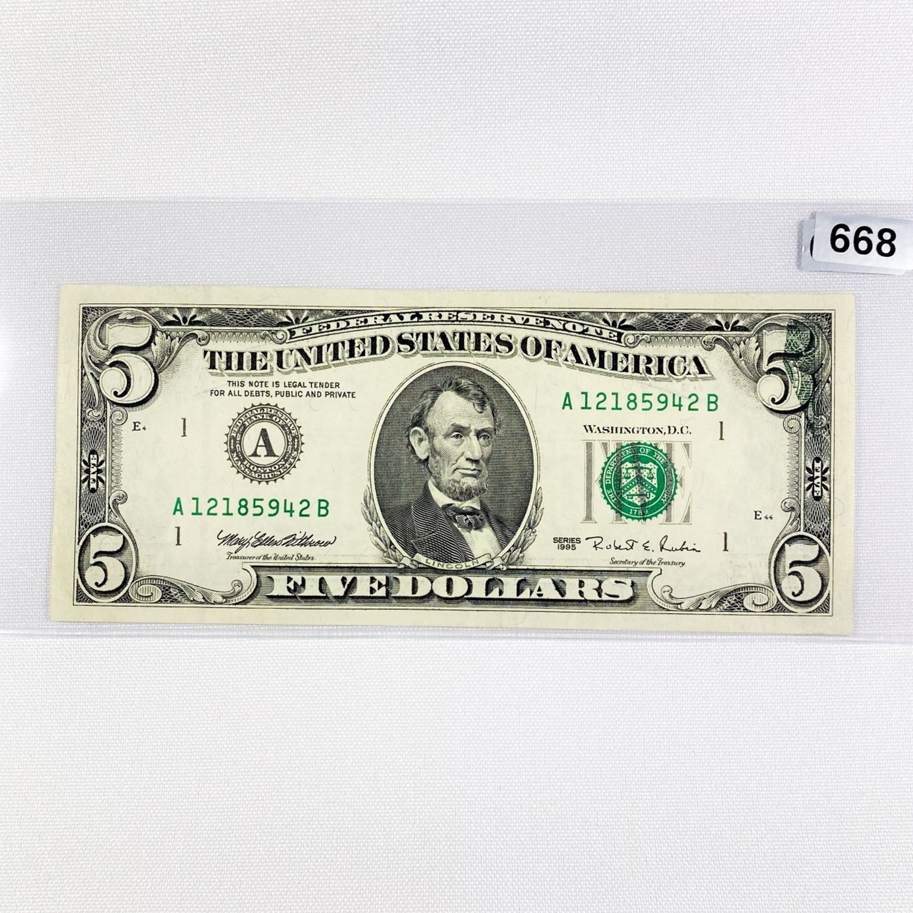1995 ERROR Partial Offset $5 Federal Reserve Note