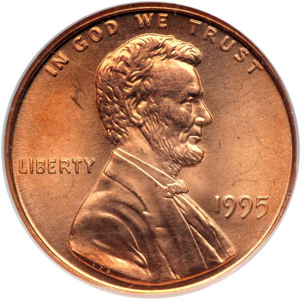 1995 Lincoln Cent. Doubled die obverse. NGC graded MS-67 Red.