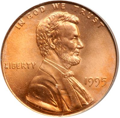 1995 Lincoln Cent. Doubled die obverse. PCGS graded MS-68 Red. A marvelous superb gem Lincoln. Pop 2,688; 1 finer in 69 (PCGS # 3127) .